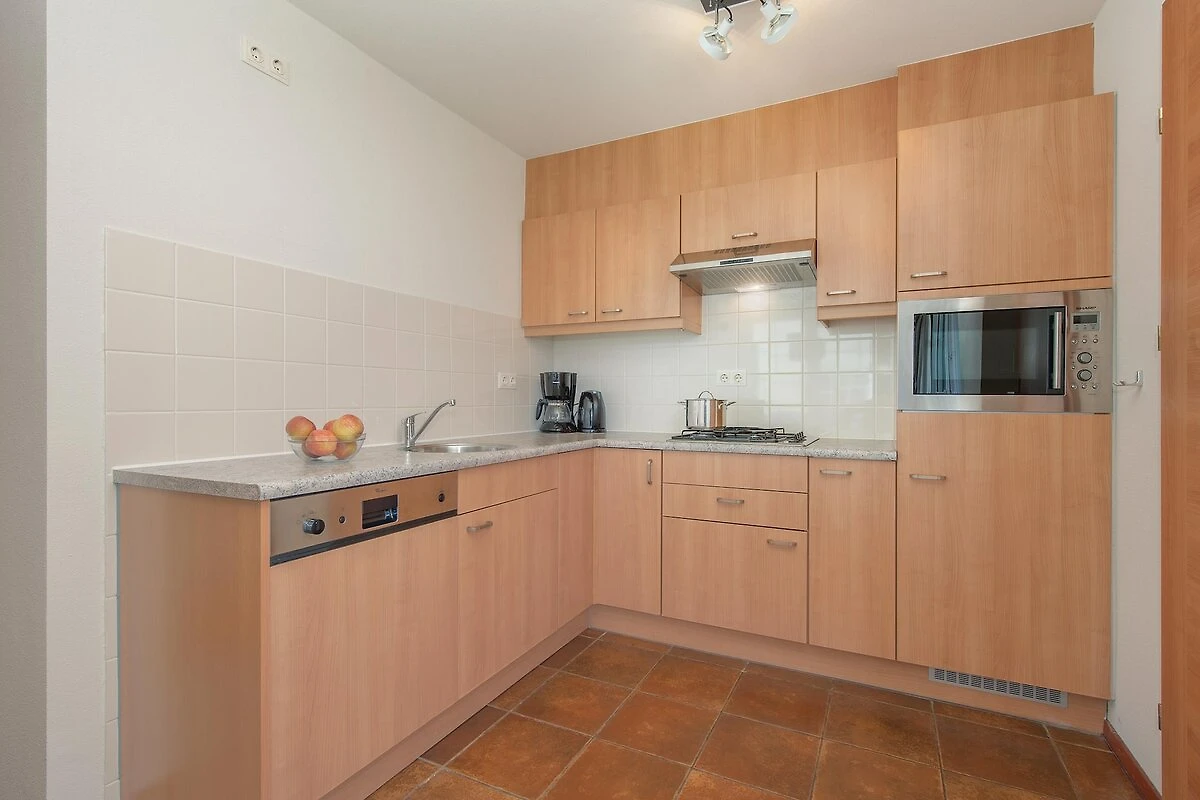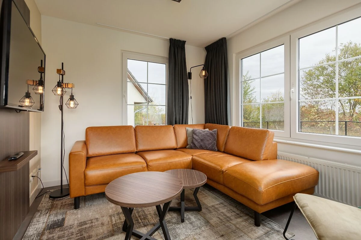 Sie verfügen über ein Wohnzimmer mit Fußbodenheizung und eine offene Küche mit Geräten. Es gibt zwei Badezimmer, eines davon mit einer traditionellen Sauna. Die Schlafzimmer sind mit zwei Einzel-Boxspringbetten ausgestattet, wahlweise auch als Doppelbelegung. In einem der Schlafzimmer befindet sich ein Fernseher. Ein Abstellraum mit Waschmaschine und Trockner rundet das Angebot ab.