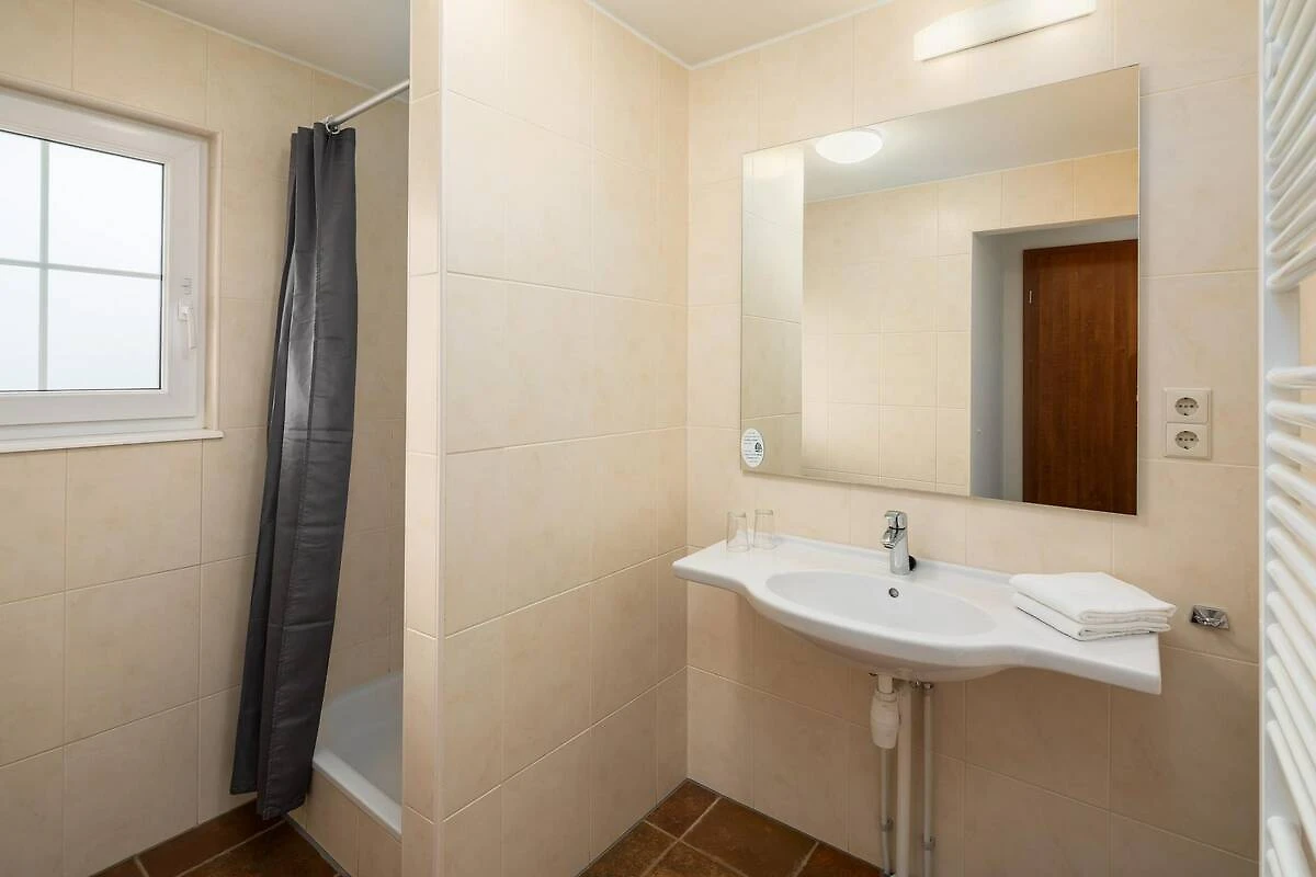 In der 1. Etage: (Schlafzimmer(Einzelbett, Doppelbett oder 2 Einzelbetten), Schlafzimmer(Einzelbett, Doppelbett oder 2 Einzelbetten), Badezimmer(Dusche, Waschbecken), Flur(Toilette))