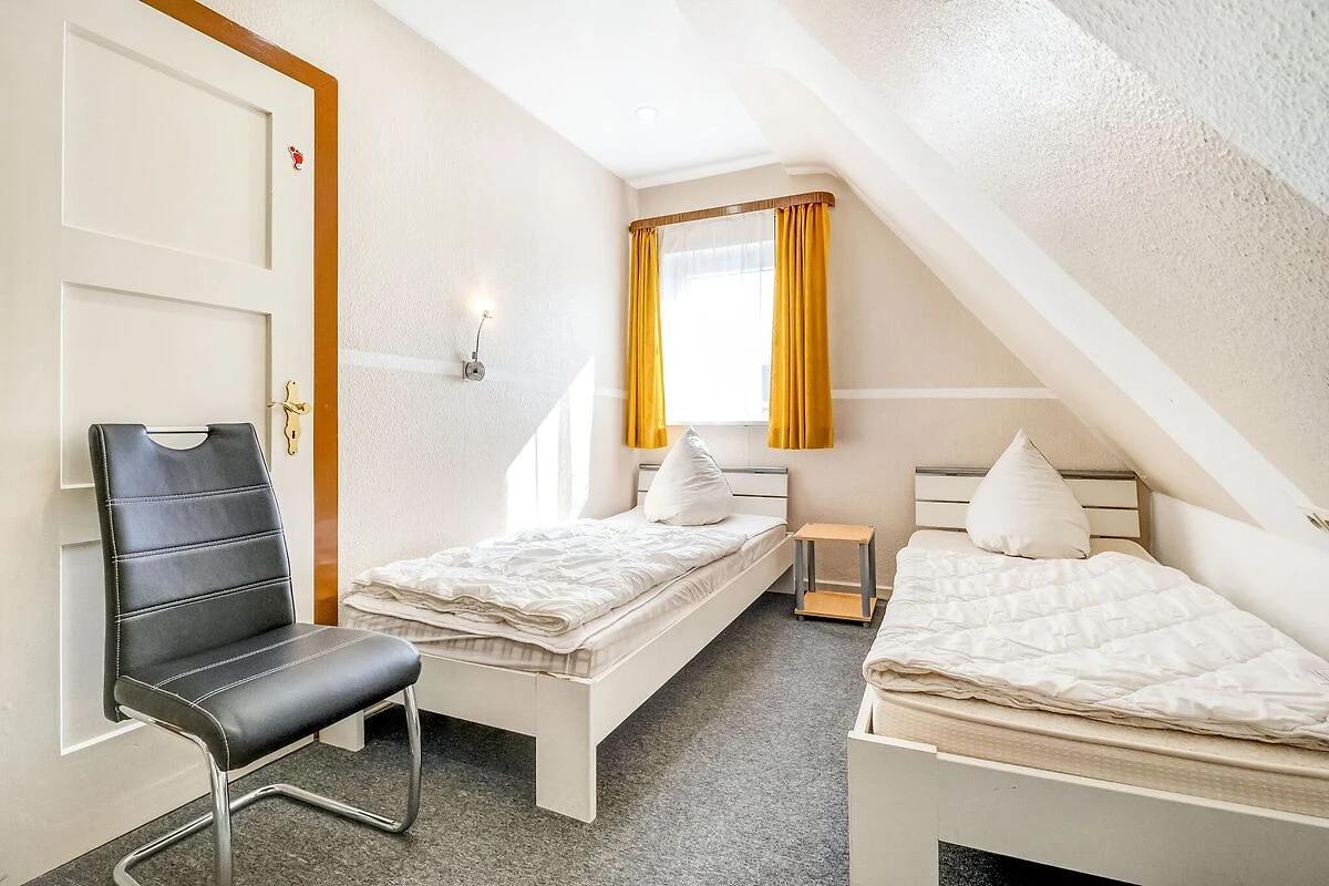 In der 1. Etage: (Schlafzimmer(Doppelbett, Waschbecken), Schlafzimmer(2x Einzelbett(90 x 200 cm), Waschbecken), Schlafzimmer(2x Einzelbett(90 x 200 cm)), Schlafzimmer(2x Einzelbett(90 x 200 cm), Etagenbett), Badezimmer(Dusche, Waschbecken), Toilette)