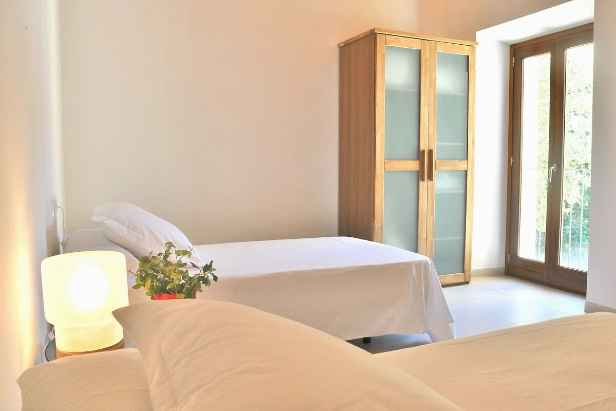 In der 1. Etage: (Schlafzimmer(2x Einzelbett(110 x 200 cm)), Schlafzimmer(2x Einzelbett(110 x 200 cm)), Schlafzimmer mit Badezimmer(Doppelbett(180 x 200 cm), Badewanne mit Dusche, Waschbecken, Toilette), Badezimmer(Badewanne, Dusche, Waschbecken, Toilette), Flur)
