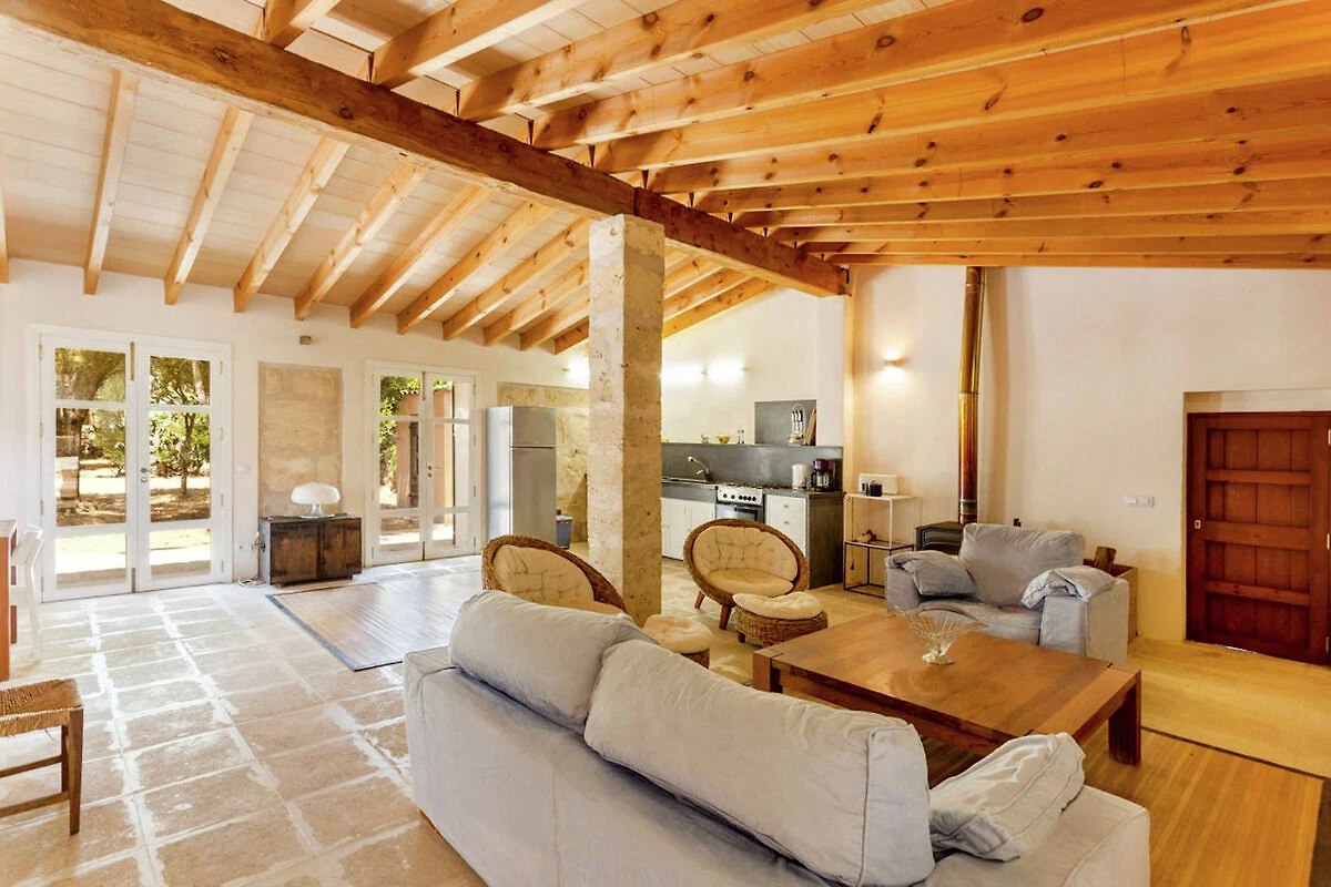 Dieses 200 Hektar große Anwesen aus dem 13. Jahrhundert liegt im Naturpark Es Trenc-Salobrar de Campos und hat Zugang zum unberührten Strand von Es Trenc, einem der schönsten Strände Mallorcas. Der Zugang zum Strand erfolgt über eine Privatstraße, die durch die Felder und den Wald des Anwesens führt. Das Anwesen besteht aus fünf unabhängigen Unterkünften mit insgesamt 12 Doppelzimmern und bietet somit Platz für maximal 24 Personen. Jedes Haus verfügt über Klimaanlagen in den Schlafzimmern, eine ausgestattete Küche und zwischen 1 und 3 Badezimmer. Das Anwesen verfügt über einen Swimmingpool und eine Lodge zwei Minuten vom Strand entfernt, wo Sie sich entspannen, das Badezimmer und die Dusche sowie die Minibar nutzen können. Die Finca ist ein sehr ruhiger Ort, ideal für Familientreffen oder für diejenigen, die sich von der Stadt abschalten möchten. Zusätzlich zu den Häusern können Sie die Gartenbereiche im Freien für angenehme Abendessen mit Familie und Freunden nutzen. Das nächstgelegene Dorf ist Campos, 10 Autominuten entfernt, mit einer Vielzahl von Supermärkten, Geschäften und Restaurants. Der Flughafen von Palma de Mallorca ist 40 Autominuten entfernt. Wichtige Details: - Das Anwesen besteht aus fünf Gästehäusern. - Rauchen ist im Haus absolut verboten.