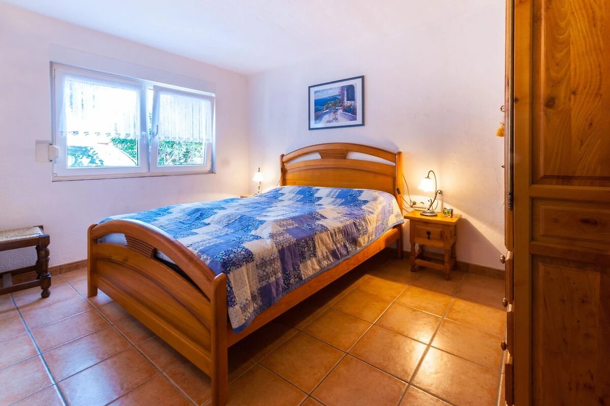 Parterre: (Wohnzimmer(TV(Flatscreen, Satellit, Deutsch Fernsehsender)), Wohnküche(Esstisch(4 Personen), Wasserkocher, Kochherd(elektrisch), Kaffeemaschine, Mikrowelle, Kühlschrank), Schlafzimmer(Französisches Bett(135 x 190 cm)), Schlafzimmer(Französisches Bett(150 x 190 cm)), Badezimmer(Dusche, Waschbecken, Toilette), Veranda(auf dem Gelände)(Esstisch(4 Personen)))