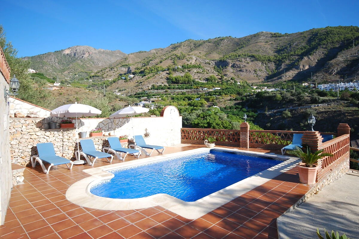 Schöne Lage mit Blick auf Frigiliana, schönes und geräumiges Haus, gepflegten Garten.