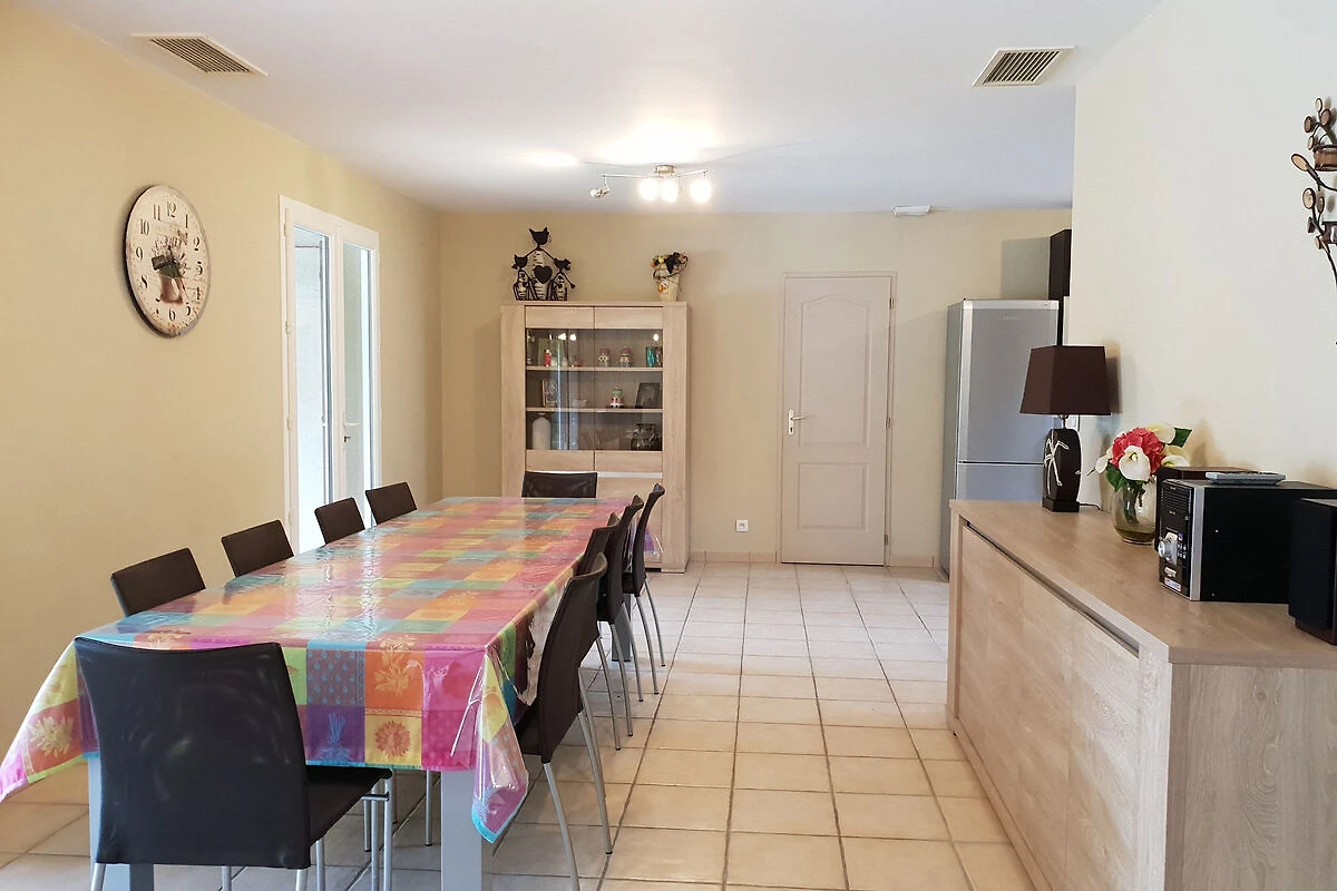 Erleben Sie die Schönheit der Provence in dieser atemberaubenden Villa mit 5 Schlafzimmern in Beaumes-de-Venise, nur wenige Schritte vom Fluss La Salette entfernt. Dieses klimatisierte Refugium eignet sich perfekt für Familien oder Gruppen von bis zu 10 Personen und verfügt über einen glitzernden privaten Pool, einen üppigen, eingezäunten Garten und zwei möblierte Terrassen, die sich ideal für Mahlzeiten im Freien eignen. Im Inneren sorgen ein heller Wohn- und Essbereich, eine voll ausgestattete moderne Küche und gemütliche Schlafzimmer für Komfort, während ein Grill den perfekten Rahmen für Sommerabende bildet.