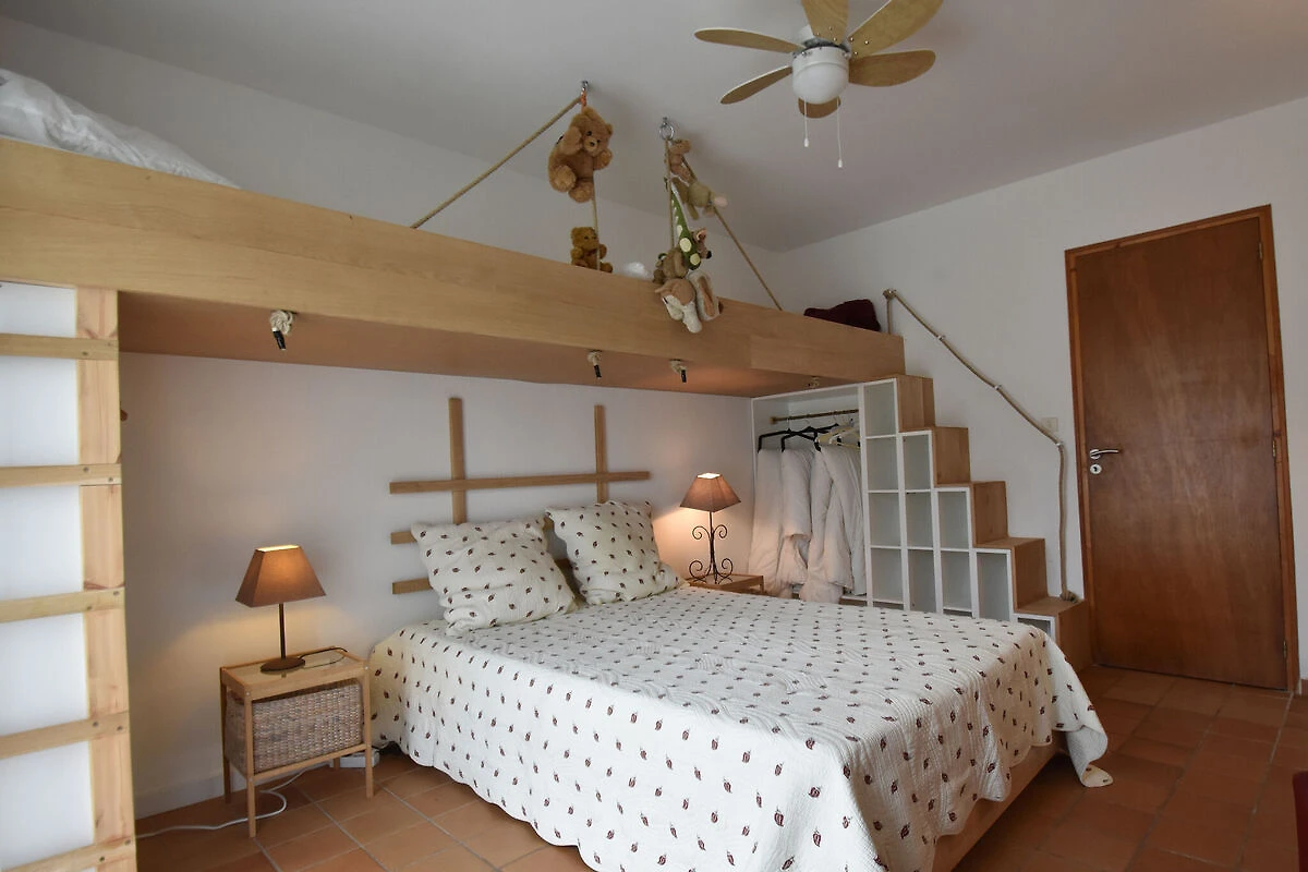 Im Haus ist es angenehm hell und im Untergeschoss finden Sie die zentrale Küche und das Wohnzimmer. Außerdem gibt es hier drei Schlafzimmer und ein Badezimmer. In einem Schlafzimmer befindet sich eine Duschkabine. Im Obergeschoss gibt es ein zweites Wohnzimmer und eine (kleine) Küche. Hier liegen die übrigen beiden Schlafzimmer und ein Badezimmer.