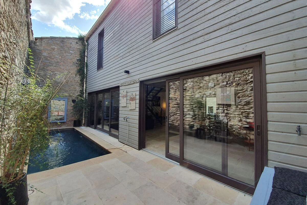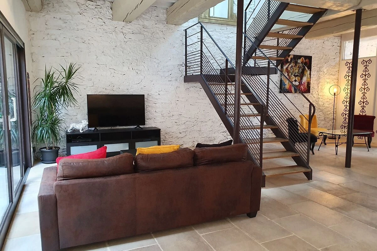 Entdecken Sie dieses wunderschöne, klimatisierte Ferienhaus mit privatem Pool am Rande des hübschen Dorfes Olonzac, 1 km vom Ufer des Canal du Midi entfernt. Es ist ideal für Familien oder Freunde. Zwischen Dorf und Weinbergen gelegen, befindet sich dieses hochmoderne Loft in einer wunderschön restaurierten ehemaligen Scheune. Die dicken Steinmauern sorgen für angenehme Temperaturen, und die raffinierte Einrichtung ist bewundernswert. Olonzac, die Hauptstadt des Minervois, ist ein sehr hübsches Dorf am Rande des Départements Aude, zwischen dem Canal du Midi und dem Dorf Minerve, etwa 30 km von Narbonne und Carcassonne mit seinem mittelalterlichen Zentrum entfernt. Die Region bietet köstliche Weine und nette Orte mit engen Gassen und gemütlichen Terrassen. Mieten Sie ein Boot für eine Fahrt auf dem Canal du Midi oder machen Sie ein Picknick am 7 km entfernten Lac de Jouarrès. Die Residenz ist nur eine halbe Stunde von den Mittelmeerstränden und eine Stunde von der spanischen Grenze entfernt. Im hellen Wohnzimmer weist der scheinbar schwebende Kamin auf die Stahltreppe. Die Rückwand ist verglast und öffnet sich zur Terrasse und dem schönen Swimmingpool mit Gegenstromanlage. Eine einzigartige Lage und ein außergewöhnliches Haus: Kurz gesagt, sehr empfehlenswert!