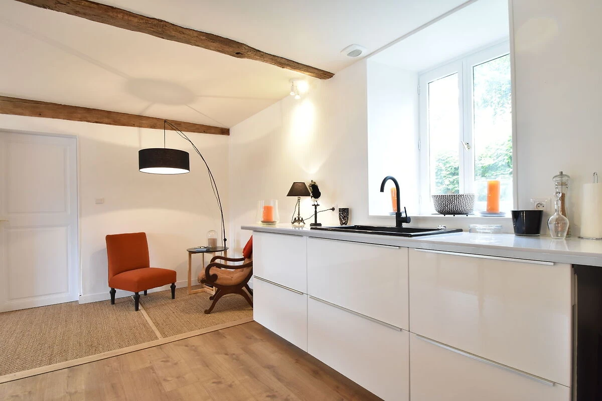 Aufgrund der irreführenden Informationen dachten wir, wir hätten ein Ferienhaus in oder in der Nähe von Angers gebucht. Tatsächlich lag es aber 45 km nördlich, mitten im Nirgendwo. Der nächste Supermarkt war 25 Autominuten entfernt. Wir riefen Belvilla deswegen an, erhielten aber trotz Zusicherungen keine Antwort. Das Haus gehörte zu einem wunderschönen Anwesen, und abends konnte man Rehe in der Nähe beobachten. Der Besitzer war nicht zu sehen, aber der Schlüssel steckte in der Tür. Es sah wunderschön und gepflegt aus, und alles war sauber. Die große Küche war komplett ausgestattet; nur das Besteck war schwer zu finden. Im Badezimmer roch es stark nach Abwasser, aber das ließ sich durch kurzes Nachspülen beheben. Die Gegend ist sehr ruhig. Der frei herumlaufende schwarze Hund tut nichts, aber sein Bellen und Knurren klang unfreundlich. Abends wurden wir von Hornissen geplagt, die es ins Haus geschafft hatten. Sie kamen vom Licht angelockt und krochen unter der Tür hindurch. Wir versuchten, sie mit möglichst wenig Licht und Decken vor den Türen fernzuhalten, aber es half nicht viel. Wir meldeten es dem Besitzer, aber er unternahm nichts. Deshalb sind wir frühzeitig abgereist.