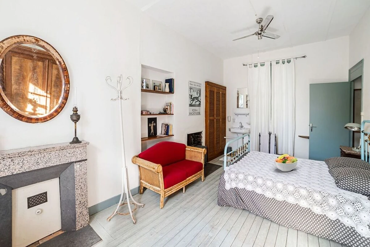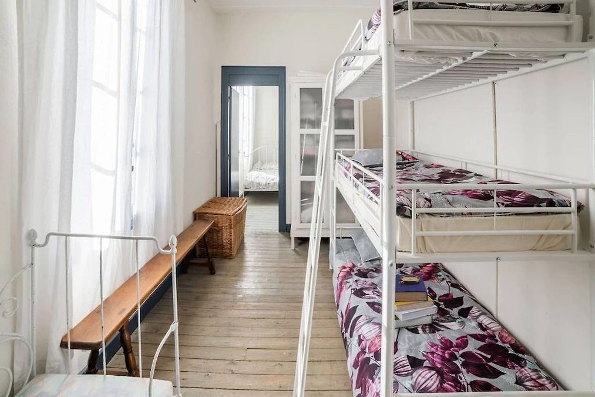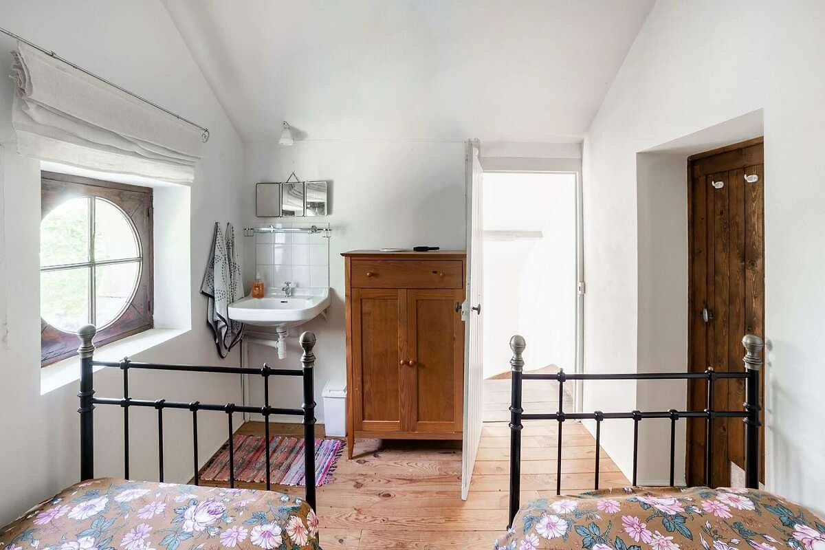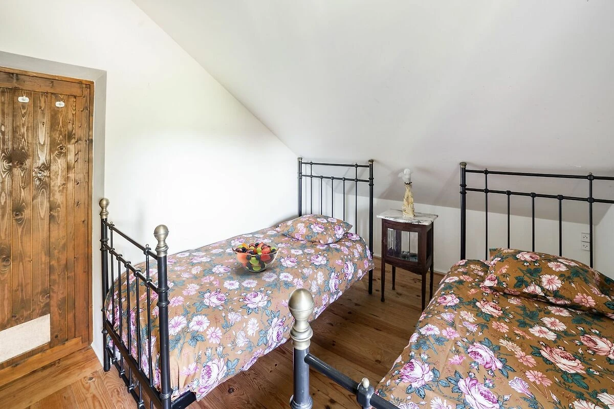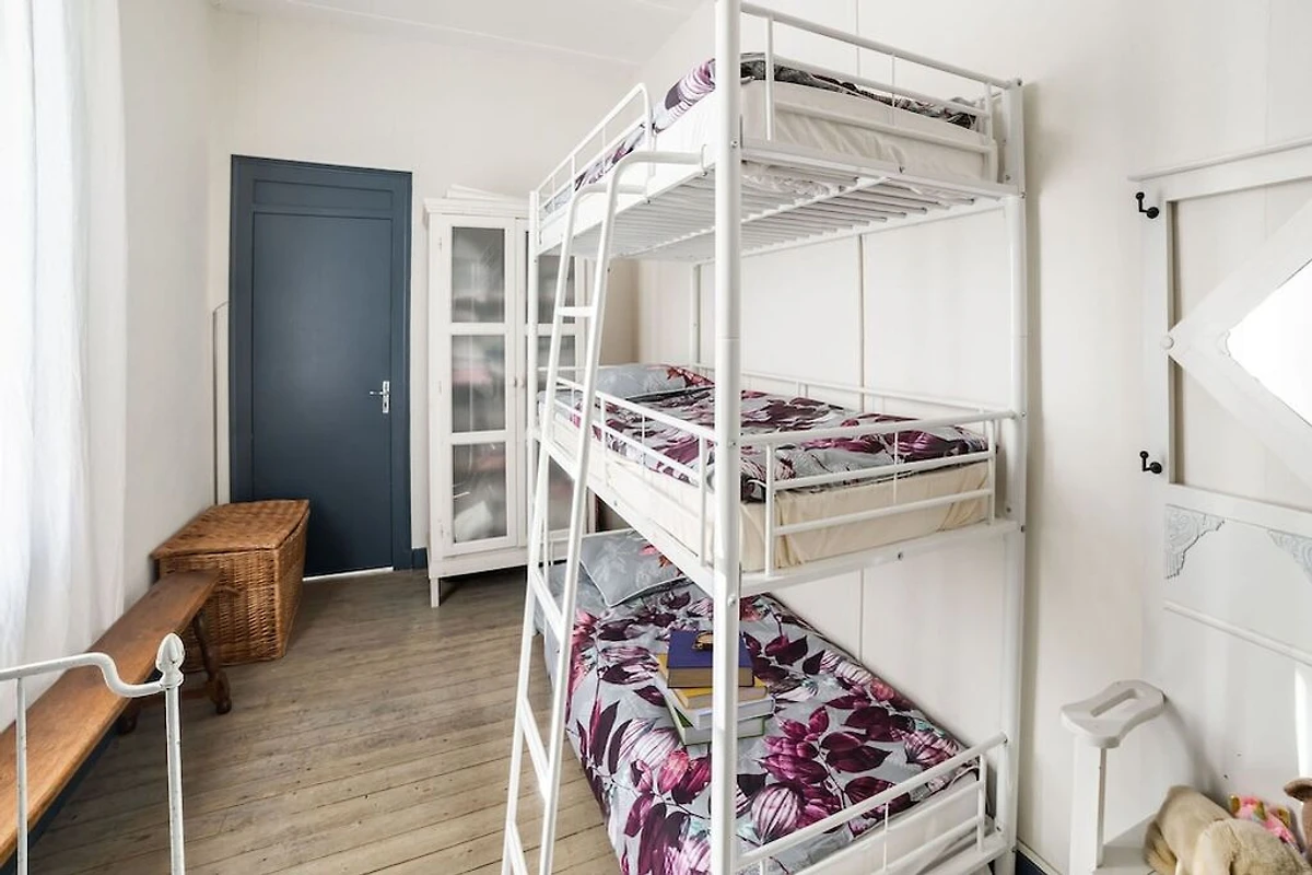 In der 1. Etage: (Schlafzimmer(Doppelbett, Waschbecken, Heizung), Schlafzimmer(Doppelbett, Kaminofen, Waschbecken), Kinderzimmer(Etagenbett für 3 Personen), Badezimmer(Badewanne, Dusche, Waschbecken, Waschmaschine, Heizung), Toilette)