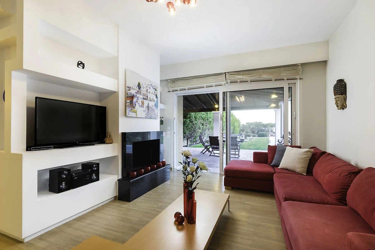 Waschmaschine, Klimaanlage, Terrasse(alleinige Nutzung), Garten(alleinige Nutzung, 1200 m2), Gartenmöbel, Liegen, Grill, Parkplatz, Sonnenschirm, Pool(alleinige Nutzung, 8 x 4 m.), Tischtennisplatte, Kinderbett, Bügelbrett, Bügeleisen, Föhn