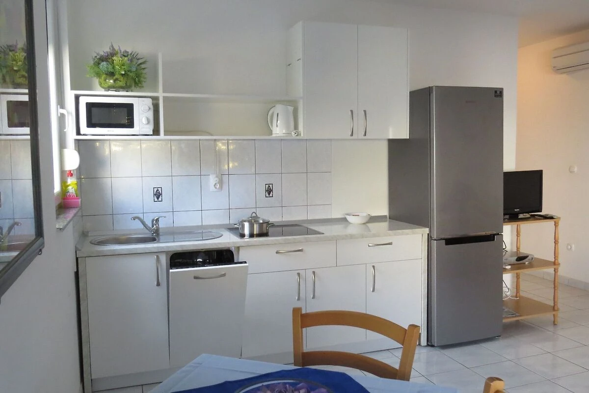 Anfahrt & Highlights: Sie erreichen Mandre über die Straßenbrücke 106 oder mit der Fähre von Prizna. Die Region Modra liegt in der Nähe, und das Dorf bietet einen ruhigen Ausgangspunkt mit einfachem Zugang zu Küstenabenteuern. Ob Sie Novalja erkunden oder am Meer entspannen – dieses Apartment verbindet Lage und Freizeit auf wunderbare Weise.