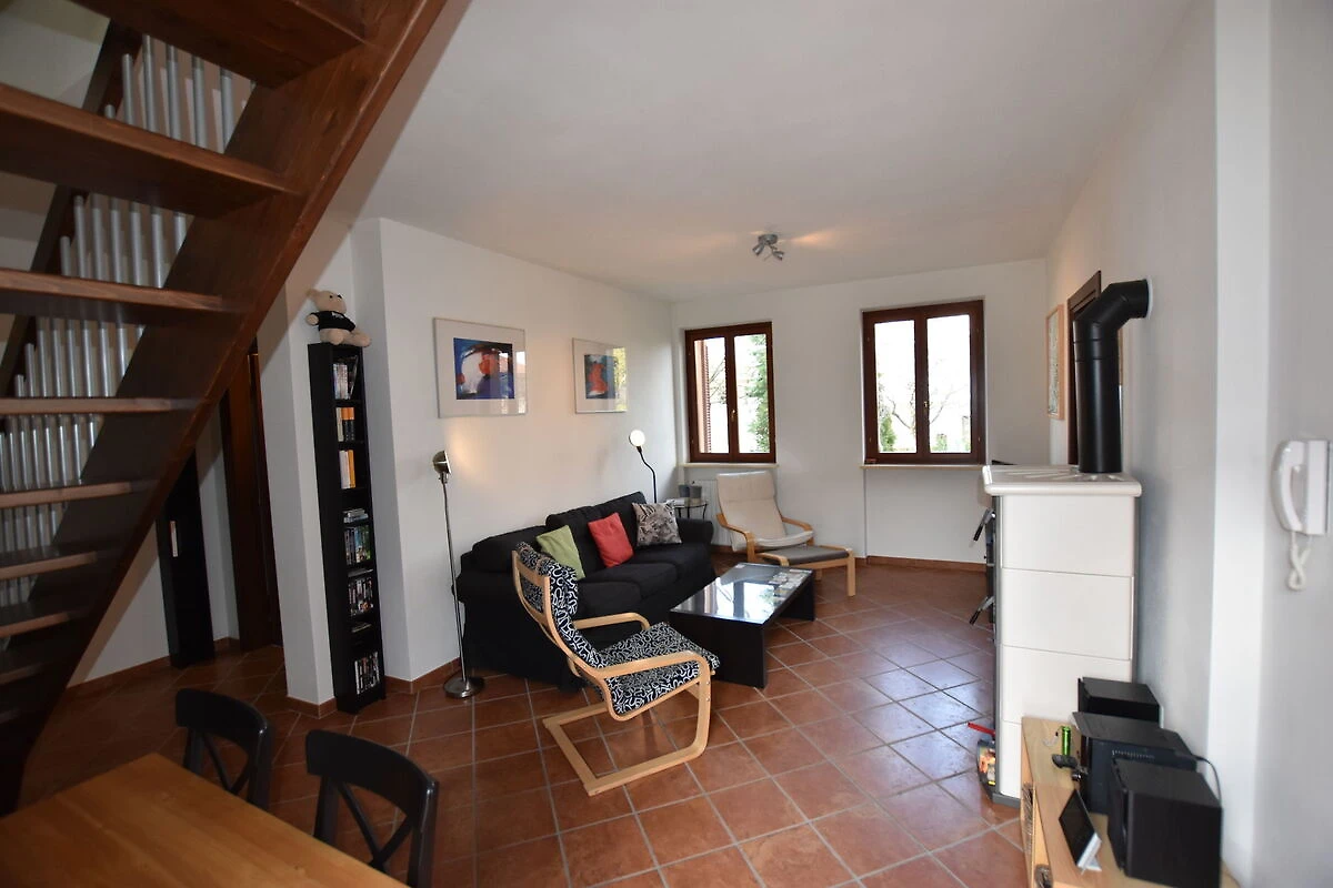 Parterre: (Wohnzimmer(TV, Ofen, CD-Spieler), Küche(Wasserkocher, Backofen, Mikrowelle, Spülmaschine, Tiefkühlschrank, Balkon), Badezimmer(Dusche, Waschbecken, Toilette, Bidet))