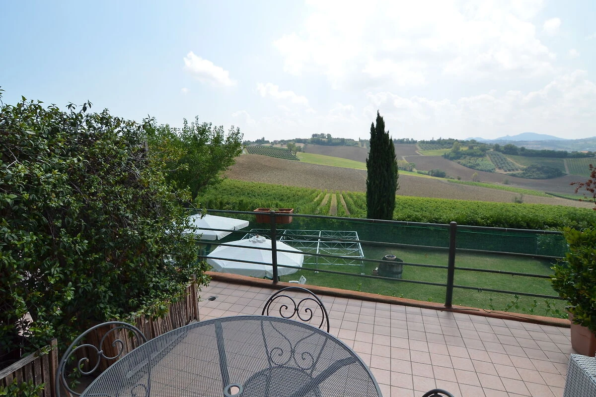 Schöne Aussicht auf die umliegenden Weinberge und Felder. Das Apartment Beato Enrico ist sehr klein, aber es gibt einen großen Balkon.