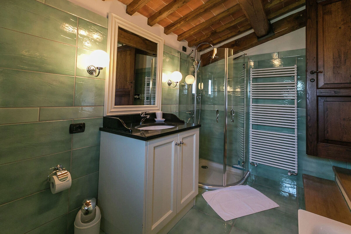 Am Ende des Tages können Sie Ihre Fahrräder im Fahrradschuppen abstellen und es gibt eine Ladestation für Elektroautos (nur zugänglich mit Shell-Recharge, MTC-Shell Recharge, XXImo Mobility Pass und TravelCard Combipass). Das luxuriöse Ferienhaus in einem kleinen Borgo verfügt über einen Gemeinschaftspool und einen schönen Garten. Die Ferienwohnung befindet sich auf einem sorgfältig restaurierten Anwesen im Casentino-Tal.