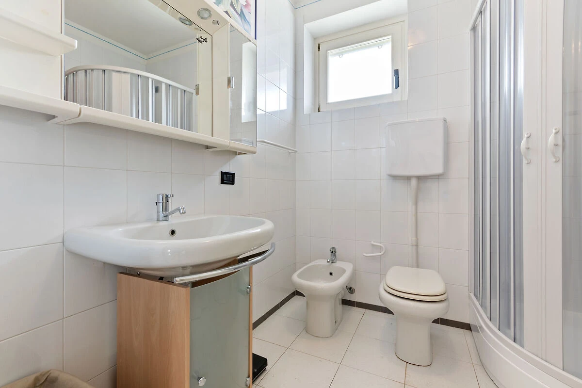 In der 1. Etage: (Wohnzimmer(Doppelschlafcouch, TV(Satellit), Balkon, Gartenmöbel), offene Küche(Spülmaschine), Schlafzimmer(Doppelbett), Badezimmer(Dusche, Waschbecken, Toilette, Bidet), Waschmaschine, Heizung(Zentral, Gas), Klimaanlage)