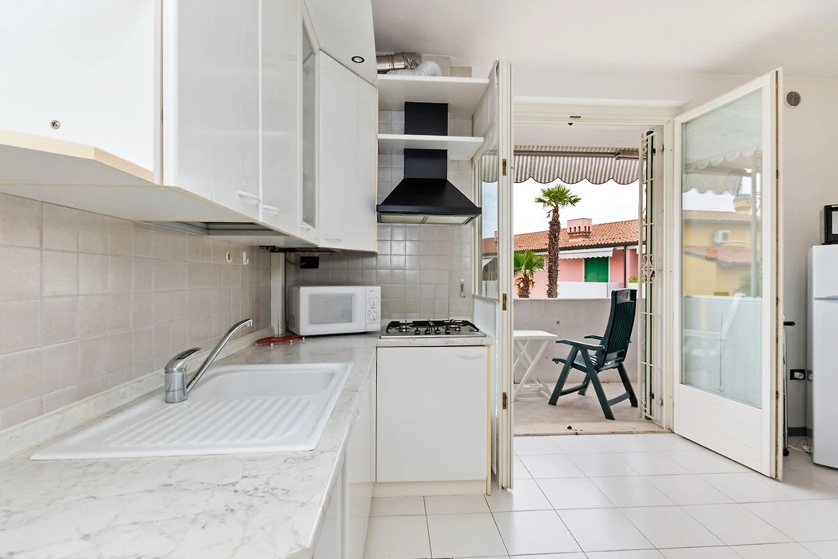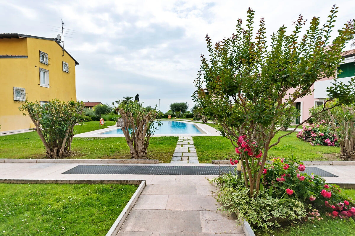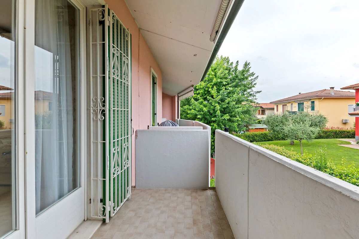 Die Anlage und die Umgebung: Die Anlage befindet sich in ruhiger doch zentraler Lage, auf nur 700 m Abstand vom See und vom Zentrum von Lazise, und umfasst 20 Einheiten mit Pool und Tiefgarage. Die Sonnenuhr auf der Fassade, das typische Schwimmbad und der Palmengarten geben dieser Anlage einen fast tropischen Charakter. Die Meridiana ist also eine ruhige Anlage, mit bestimmten Regeln für alle Gäste und Bewohner. Liegestühle sind 2 je Wohnung vorhanden. Pool ist ca. von Mitte Mai bis Mitte September offen.