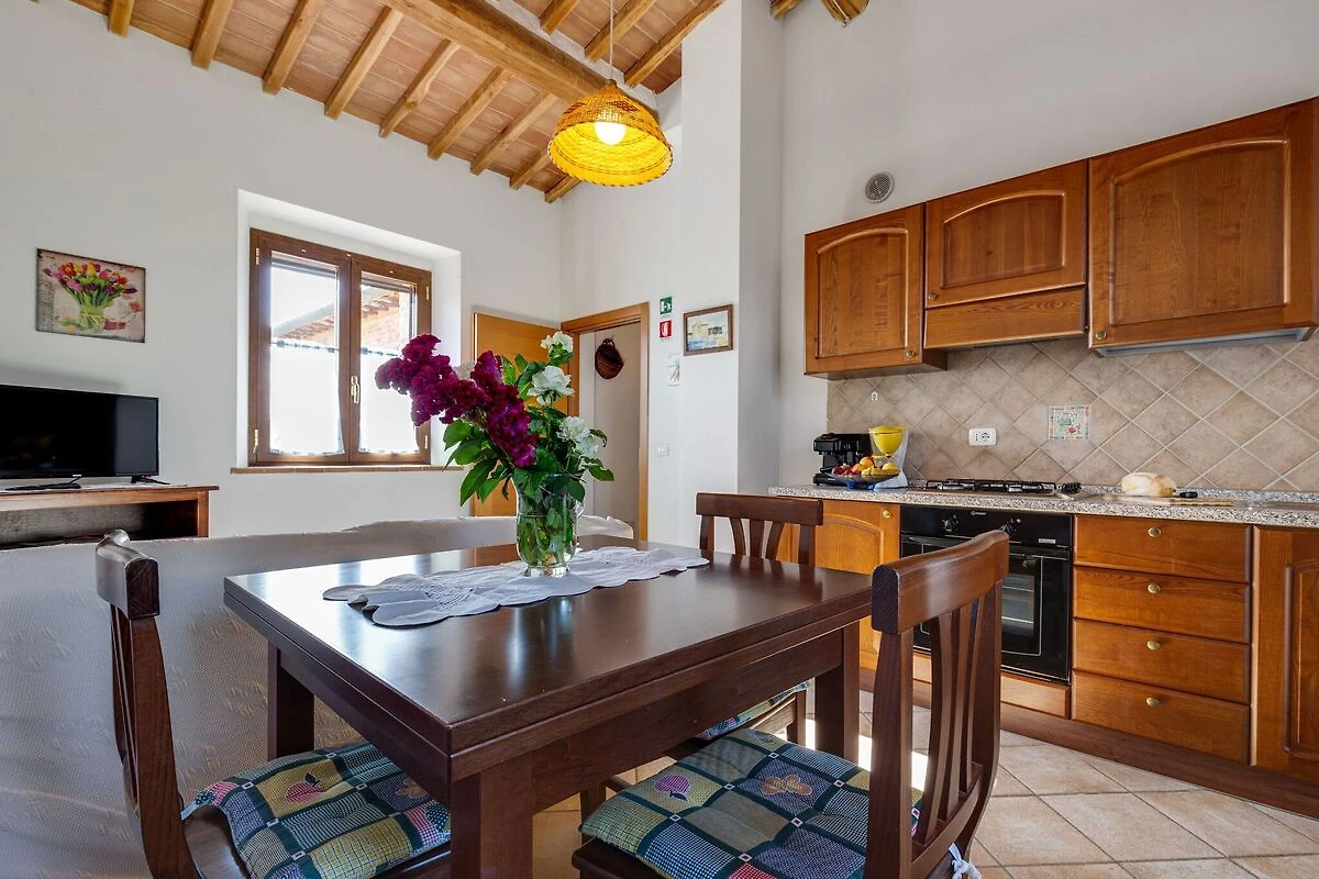 Eingebettet in die wunderschönen Täler der Toskana liegt dieses Bauernhaus in Buonconvento. Es verfügt über einen Gemeinschaftspool zum Entspannen und Erholen. Die Unterkunft bietet bequem Platz für eine kleine Gruppe oder eine Familie. Die Wohnung befindet sich im ersten Stock und ist über 14 Stufen erreichbar. Es gibt keinen Balkon.