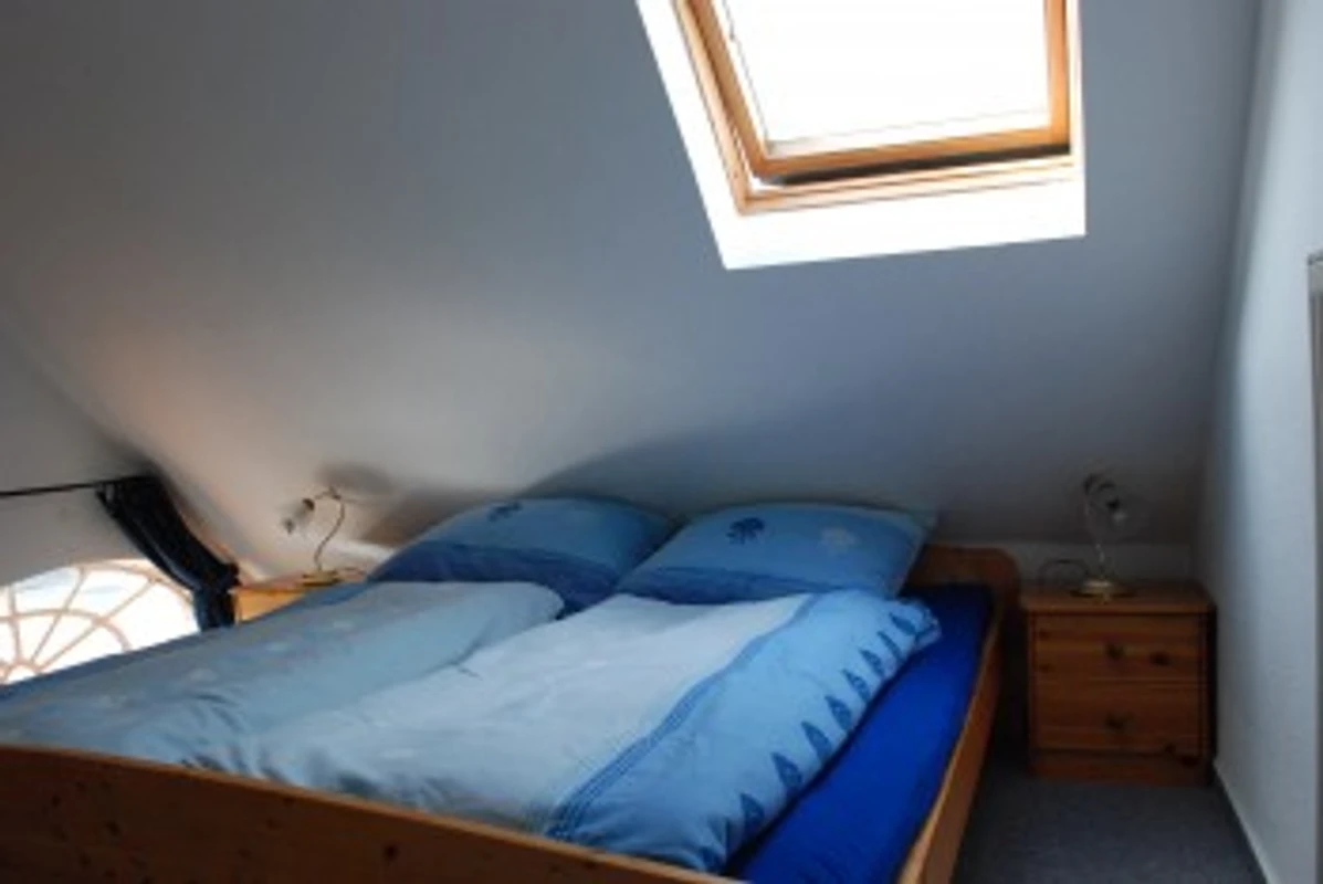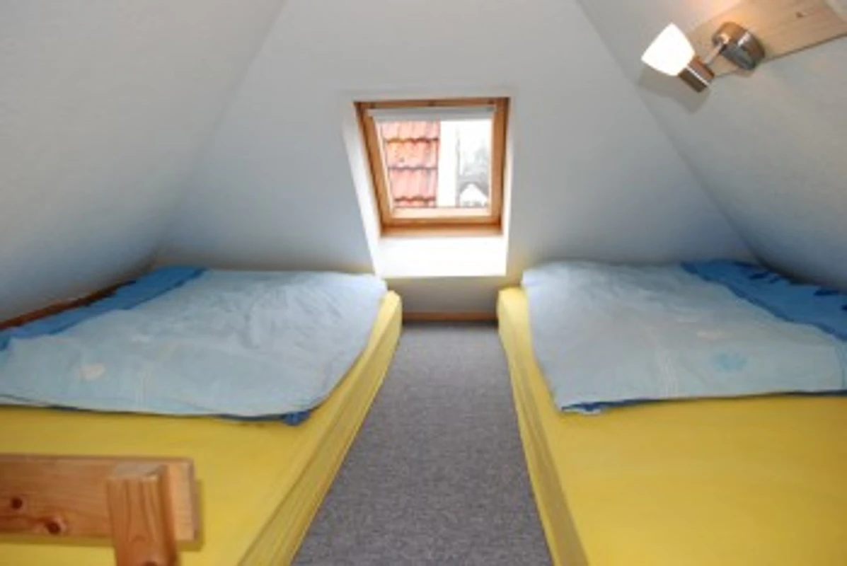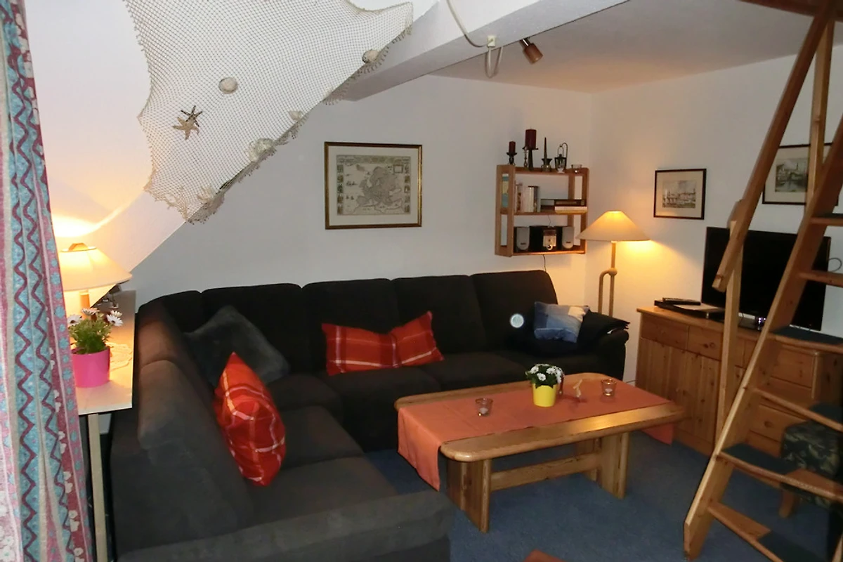 Die Schlafkoje im Spitzboden ist idealerweise für Kinder, sie ist über eine Treppe im Wohnraum erreichbar. Siehe hierzu auch unsere Foto`s.