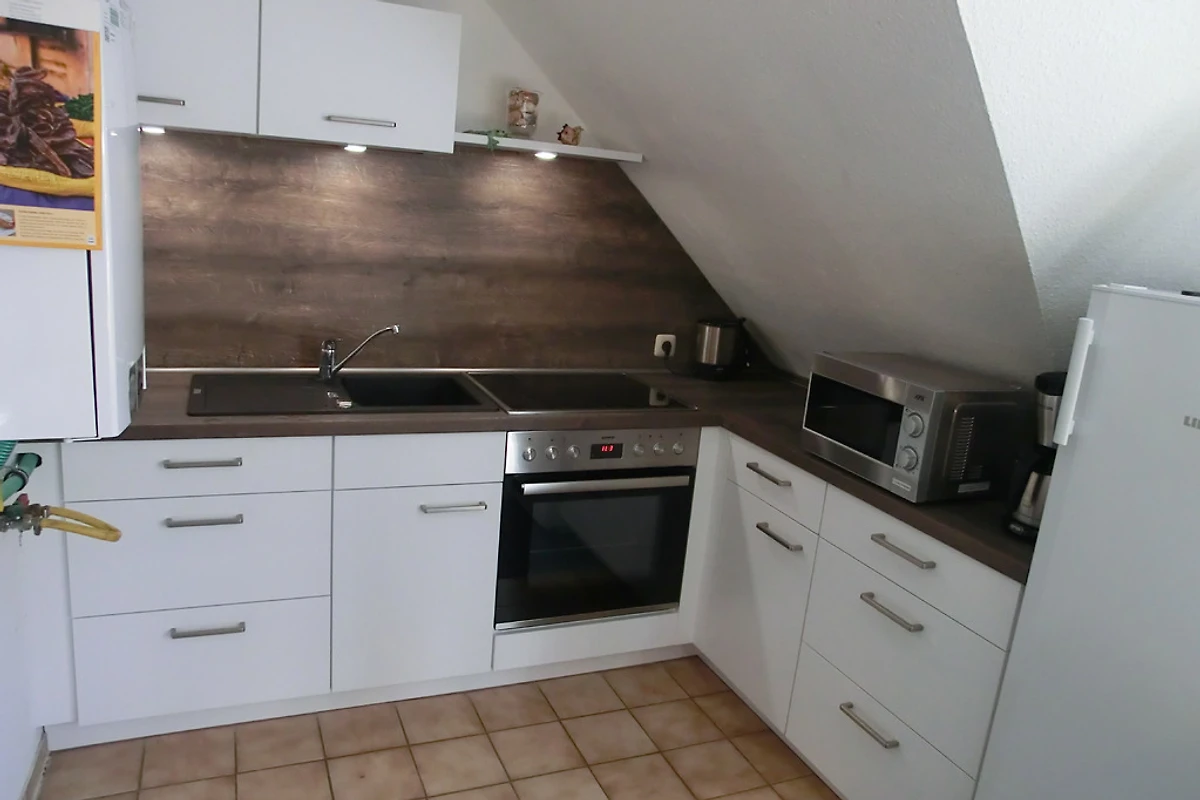 Die Wohnung, die 1995 errichte wurde, hat eine Wohnfläche von ca. 42 m² und ist im Dachgeschoss, im ersten Stock. Sie besteht aus einem gemütlichen Wohnraum mit Südbalkon zum Garten gelegen, komplett eingerichtete Küchenzeile mit Essplatz, geräumiges Duschbad/WC und ein Schlafzimmer mit Doppelbett. Zusätzlich gibt es eine offene Schlafkoje im Spitzboden, idealerweise für 2 Kinder, die über eine Treppe im Wohnzimmer zu erreichen ist (keine Stehhöhe).