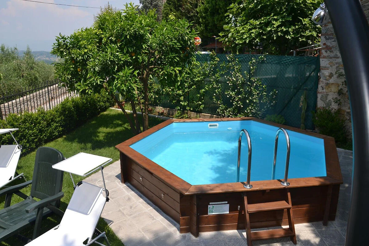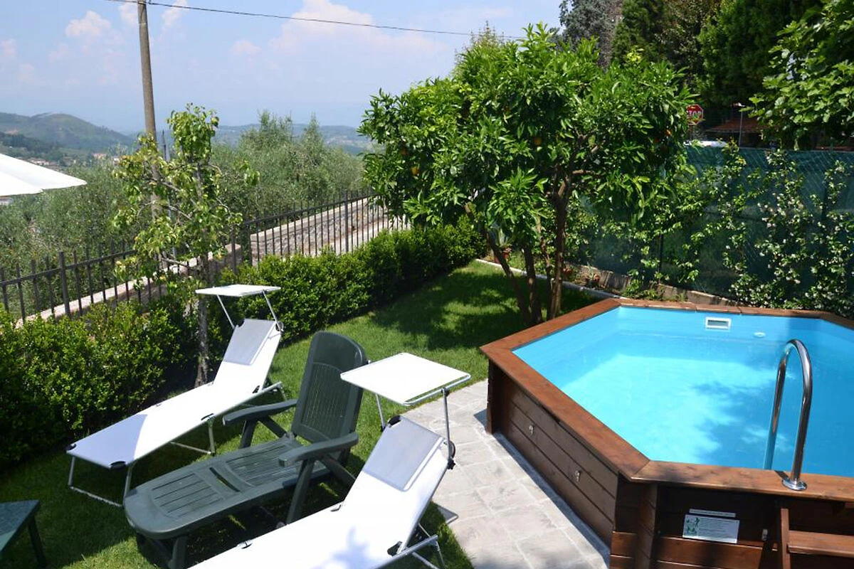Dieses elegante dreistöckige Haus in Castelvecchio di Compito verfügt im ersten Stock über ein Wohnzimmer mit Sat-TV, dekorativem Kamin und einer voll ausgestatteten Küche (Herd, Backofen, Geschirrspüler, Kühl-Gefrierkombination und Waschmaschine). Im zweiten Stock finden Sie ein Doppelzimmer mit Fernseher und ein Badezimmer mit Whirlpool und Dusche. Im dritten Stock befinden sich zwei weitere Schlafzimmer (ein Doppelzimmer und ein kleines Doppelzimmer) sowie ein weiteres Badezimmer. Das Haus ist mit Klimaanlage, Heizung, kostenlosem WLAN, einem eingezäunten, 250 m² großen Privatgarten mit Gartenmöbeln, Parkplätzen und einem privaten Pool (4 x 4 m, geöffnet von Mitte Mai bis Mitte September) ausgestattet. Haustiere sind nicht erlaubt.