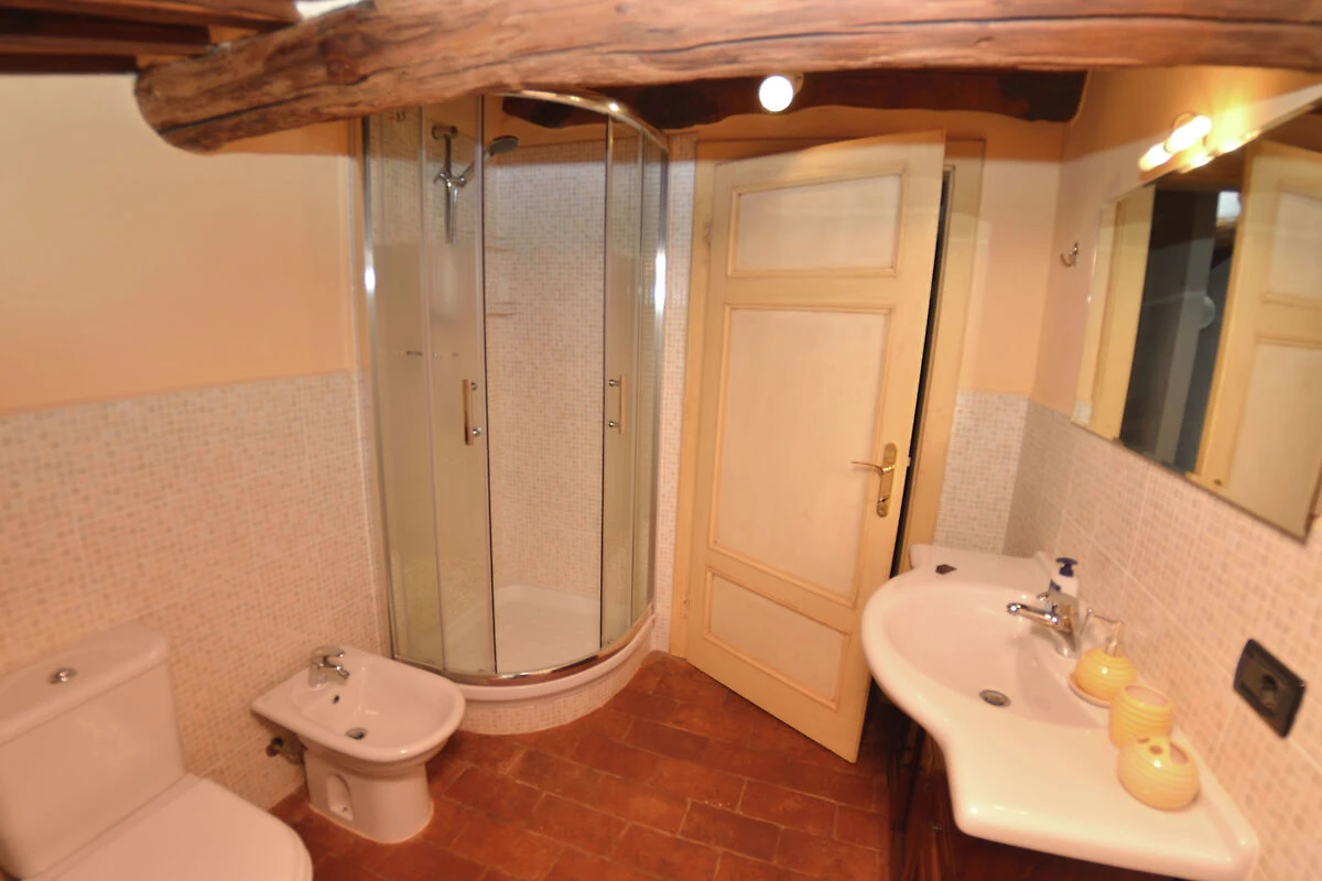 Die Ankunft war herzerwärmend, die Besitzer warteten schon auf uns und uns wurde sofort etwas zu trinken angeboten. Dann gingen sie mit uns durch das Haus, um alles zu zeigen. Das Haus ist komplett ausgestattet mit großen Balkonen mit einem fantastischen Panoramablick und dem Garten mit Pool. Wir haben hier viele schöne Stunden verbracht. Wir genossen die Ruhe und den Ausblick auf "unseren" Berg. Und das ist das einzige, was Sie bei der Buchung berücksichtigen müssen, Sie sind wirklich auf einem Berg und es dauert fast 20 Minuten, um hinunterzusteigen. Wir haben uns bewusst dafür entschieden und es geliebt. Sie können über die Umgebung kurz sein, die Toskana ist toll !!