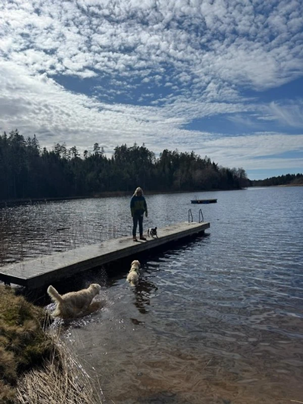 Bade- und Angelseen. Der Sandweg vom Haus führt zum schilfumsäumten Angel- und Badesee hinunter, der nur etwa 100m von der Villa Strömdalen entfernt liegt. Dort liegt auch das Ruderboot. Der nächstgelegene See liegt nur wenige Gehminuten entfernt und nach und nach können Sie immer mehr Seen auf der Insel entdecken. Auch an den schönsten Badestellen treffen Sie selten andere Schwimmer an, denn die Schweden lieben die Abgeschiedenheit. Es gibt allerdings auch mehrere offizielle Badestrände. Dort finden Sie Sprungtürme und auch ganz seichte Badestellen