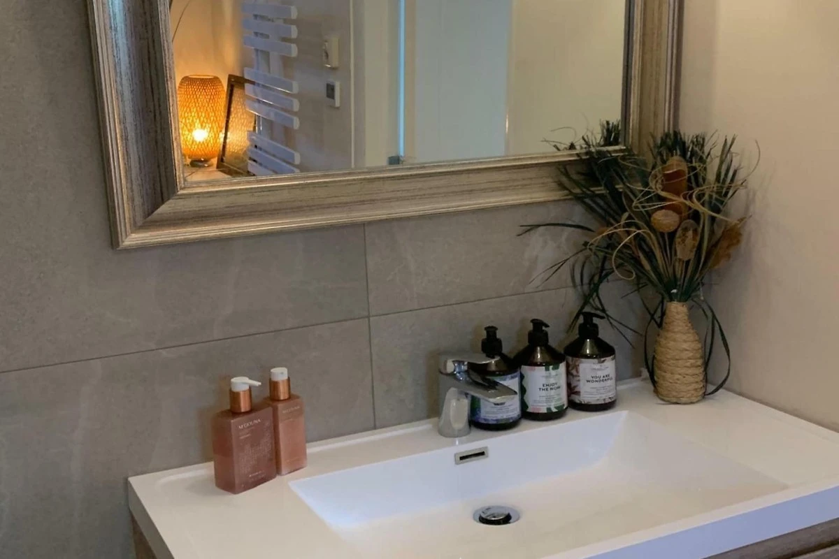 Super sauber und stilvoll! Alle Einrichtungen, die du brauchst, von Netflix bis zu einer voll ausgestatteten Küche. Die Lage fühlt sich abgelegen an, ist aber trotzdem nah an netten Restaurants in Ommen. 10/10 würde für einen Gruppenausflug empfehlen.
