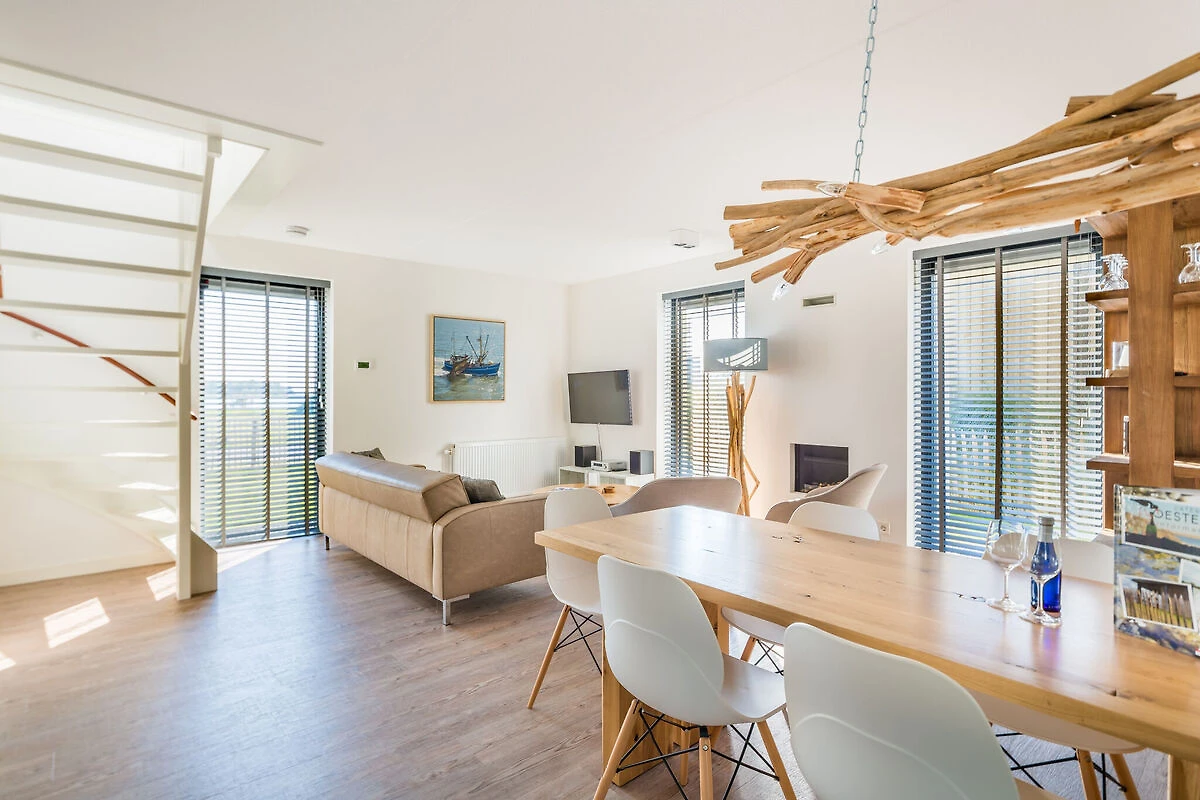 Die Villa ist ideal für Familien oder Paare und bietet drei wunderschön eingerichtete Schlafzimmer – eines im Erdgeschoss mit eigenem Bad und zwei im Obergeschoss, jeweils mit einem Doppelbett oder zwei Einzelbetten. Zwei elegante Badezimmer, eine warme Inneneinrichtung und viel Tageslicht machen diese Villa zum perfekten Rückzugsort für das ganze Jahr. Treten Sie durch die Gartentüren auf Ihre private Terrasse mit Gartenmöbeln und genießen Sie ruhige Morgen oder sternenklare Abende in Ihrem eigenen abgeschiedenen Winkel Zeelands.