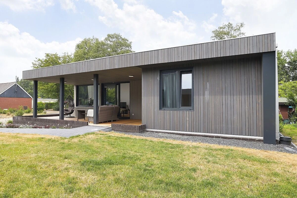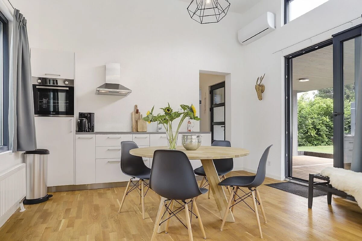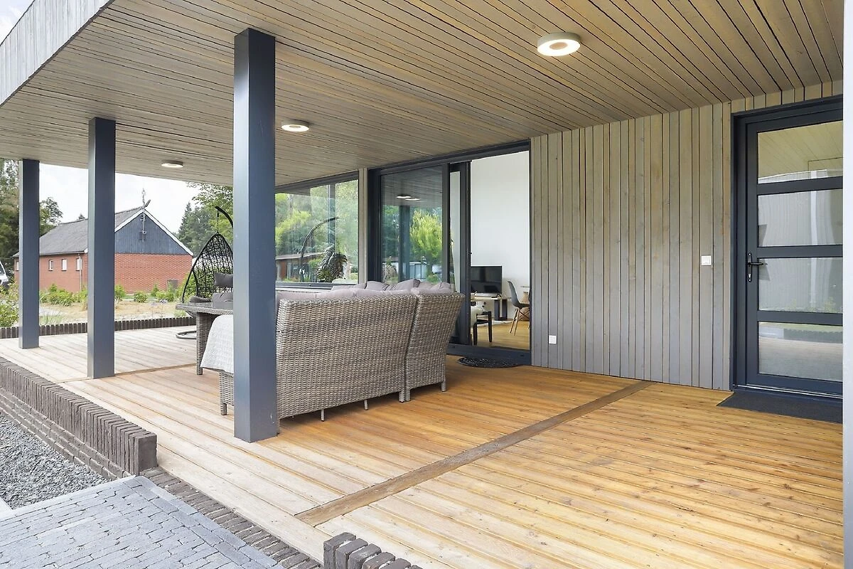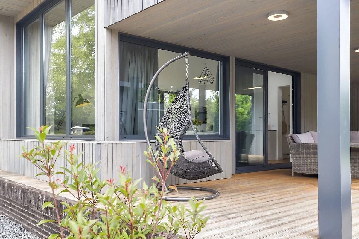 Betreten Sie dieses wunderschön gestaltete Refugium, in dem moderne Architektur auf die Ruhe der Landschaft trifft. Mit seiner markanten Silhouette und den geschmackvollen Holzelementen beeindruckt dieses stilvolle Ferienhaus sofort. Große Fenster durchfluten den Innenraum mit natürlichem Licht, während die hohen Decken ein Gefühl von luftiger Großzügigkeit vermitteln. Jedes Detail, vom einladenden Wohnbereich bis hin zu den eleganten Oberflächen, spiegelt Komfort und Eleganz wider – perfekt für einen entspannten Aufenthalt ohne Kompromisse beim Stil.