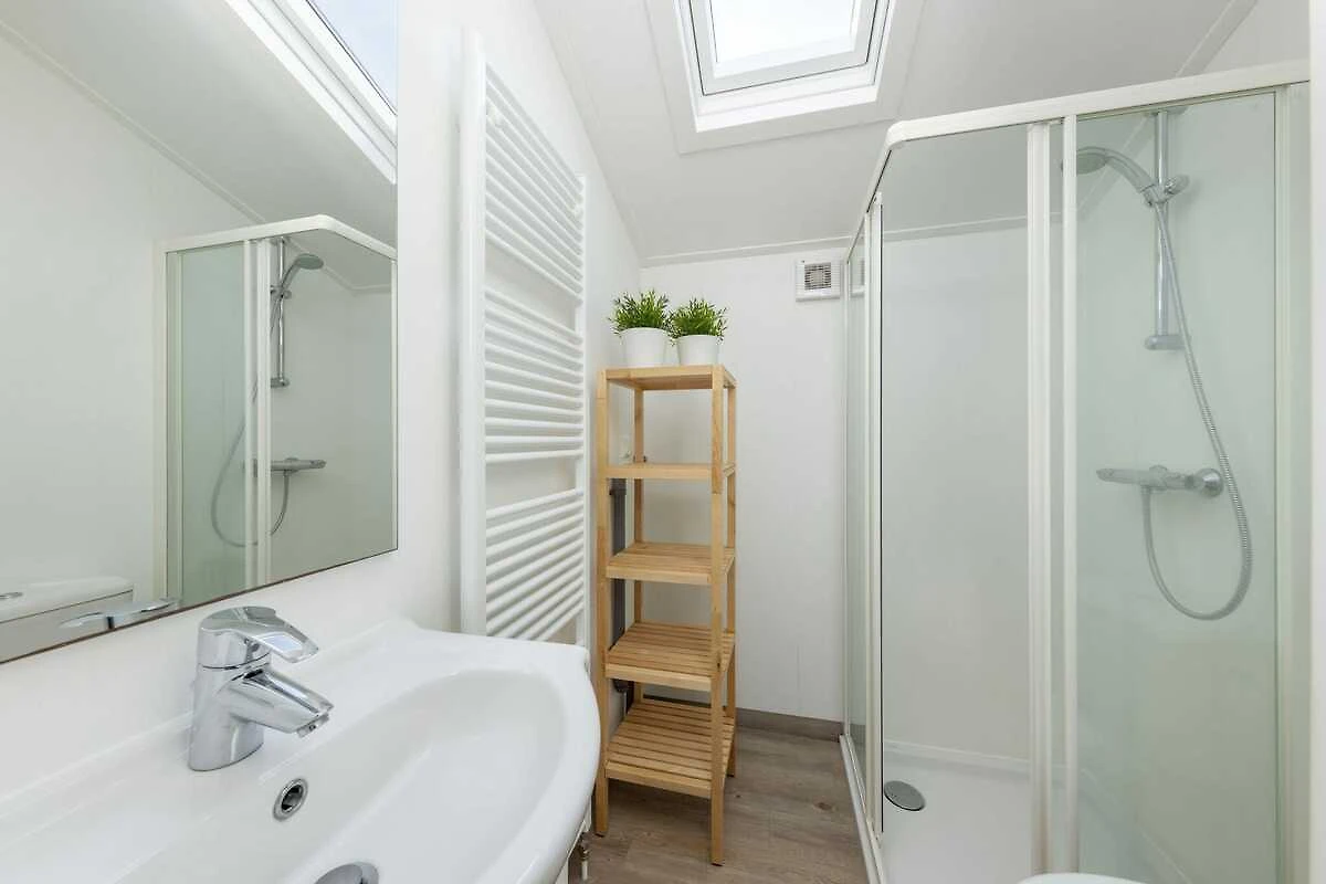 So gibt es das ebenerdige Wassercottage für 4 Personen (NL-8542-03). Sie haben ein Wohnzimmer mit Fernseher und eine offene Küche mit unter anderem Mikrowelle und Geschirrspüler. Sie haben zwei Schlafzimmer, beide mit je zwei Einzelbetten, eventuell zusammengeschoben. Im Badezimmer finden Sie eine Dusche und eine Toilette.