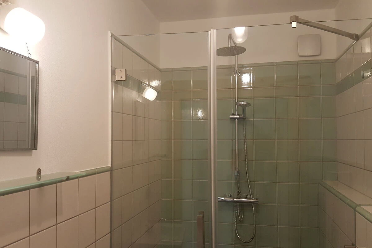In der 1. Etage: (Eingang(von außen erreichbar), offene Küche(Esstisch, Wasserkocher, Kochherd(2 Kochplatten, elektrisch), Kaffeemaschine, Kühl-/Gefrierkombination), Wohn/Esszimmer(Doppelschlafcouch, Sitzecke), Schlafzimmer mit Badezimmer(Einzelbett(90 x 200 cm), Einzelbett(90 x 200 cm), Dusche, Waschbecken, Toilette, Heizung), Schlafzimmer mit Badezimmer(Doppelbett king size, Dusche, Waschbecken, Toilette, Heizung), Badezimmer(Dusche, Waschbecken, Toilette, Heizung))