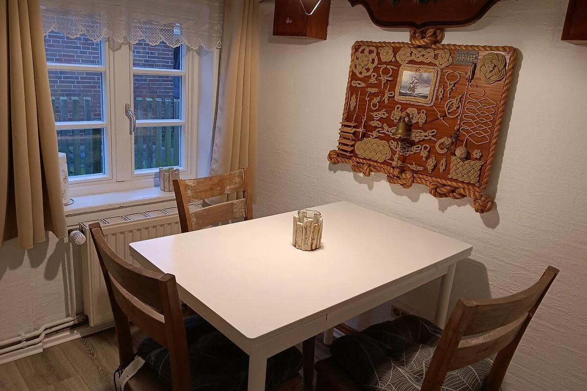 Das Ferienhaus finden Sie in einer ruhigen Sackgasse. Die Deckenhöhe beträgt im Erdgeschoss ca. 2 m ( Türstürze ca. 180 cm ) und im Dachgeschoss 2,30 m. Falls Sie die steile Treppe zum Wohnzimmer und zum 3. Schlafzimmer aus gesundheitlichen Gründen nicht benutzen können, richten wir Ihnen das Esszimmer gemütlich als Wohnzimmer mit Fernseher ein.( für max 2 Personen ) Bei Anreise sind die Betten bezogen und das Ferienhaus ist bei kaltem Wetter vorgeheizt. Für mobilitätseinschränkte Urlauber ist die Reetdachkate durch die steile Treppe nur bedingt geeignet.