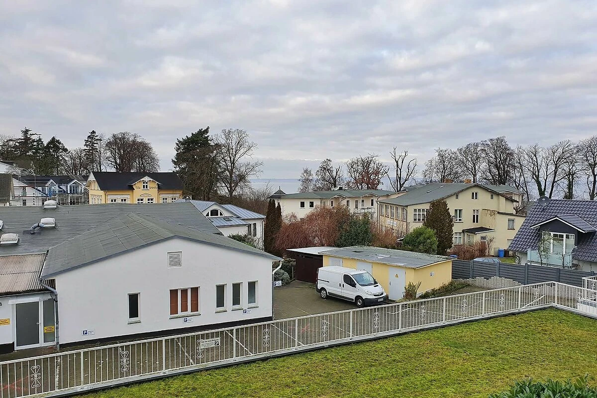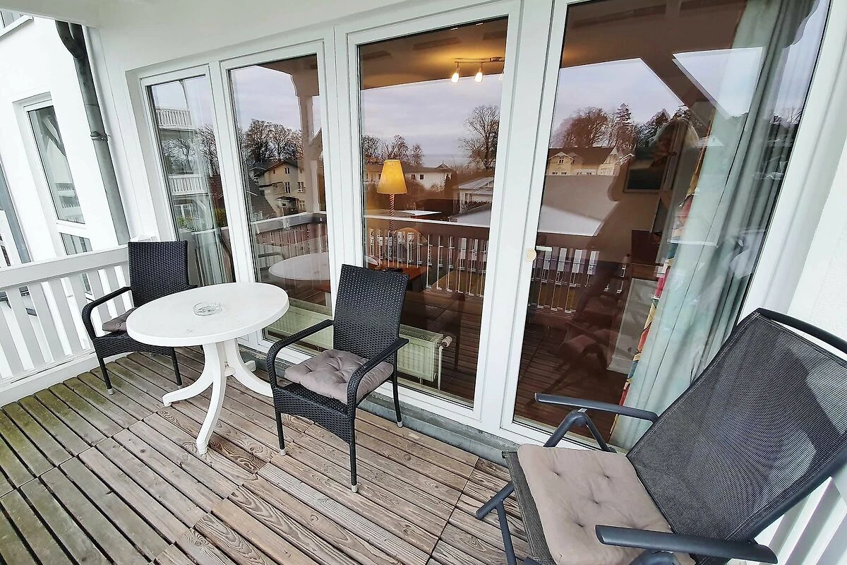 * Balkon mit Blick auf die Ostsee (durch die Baumkronen)