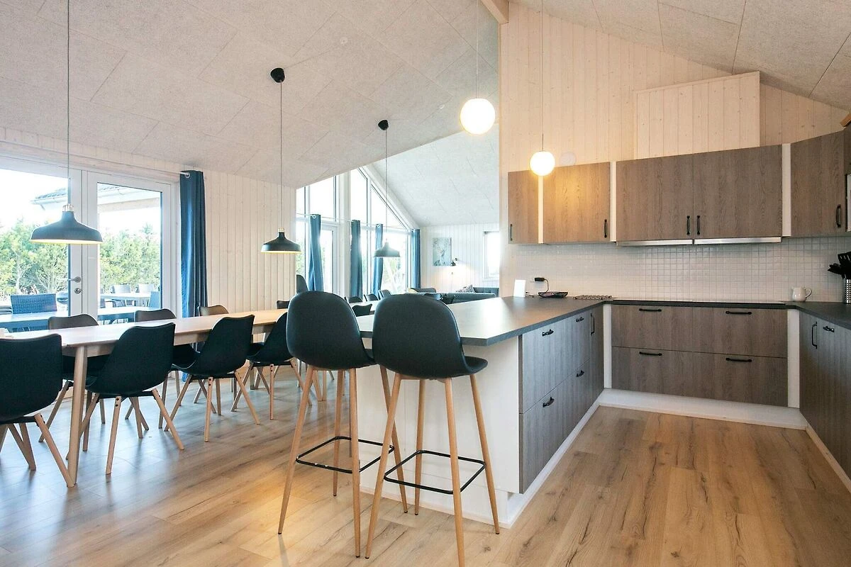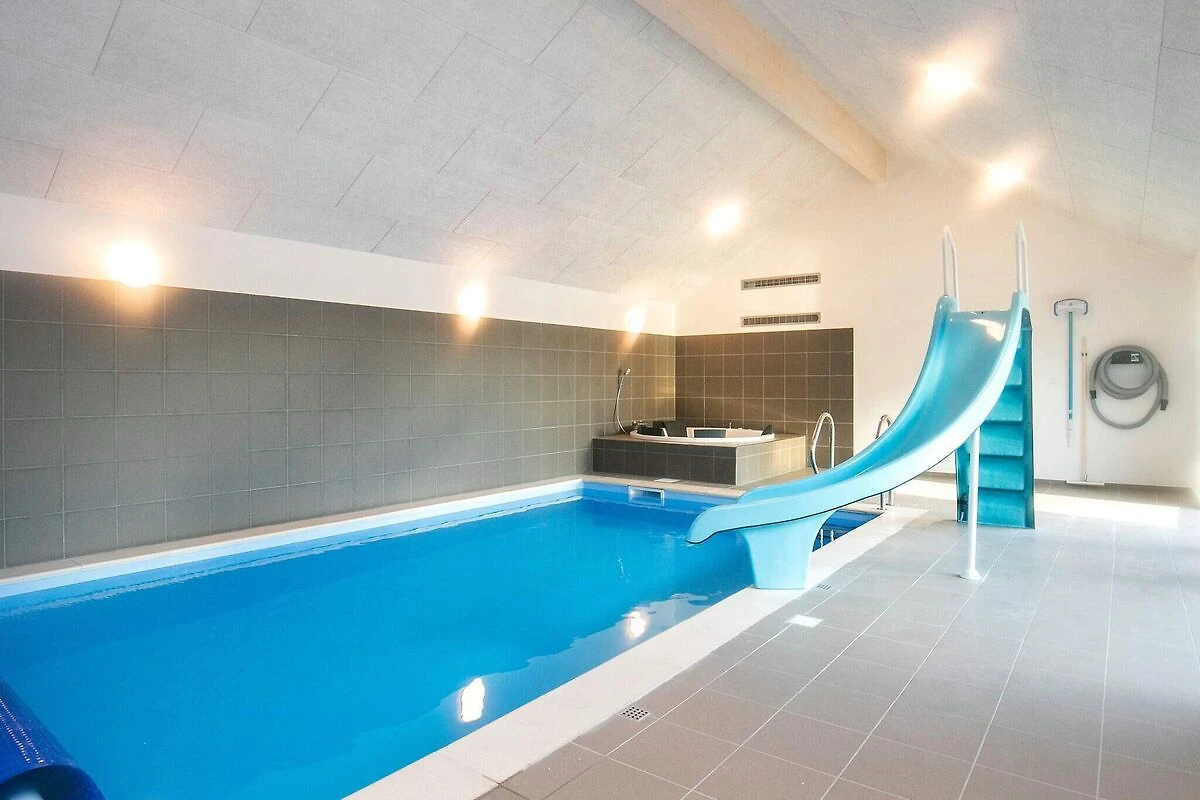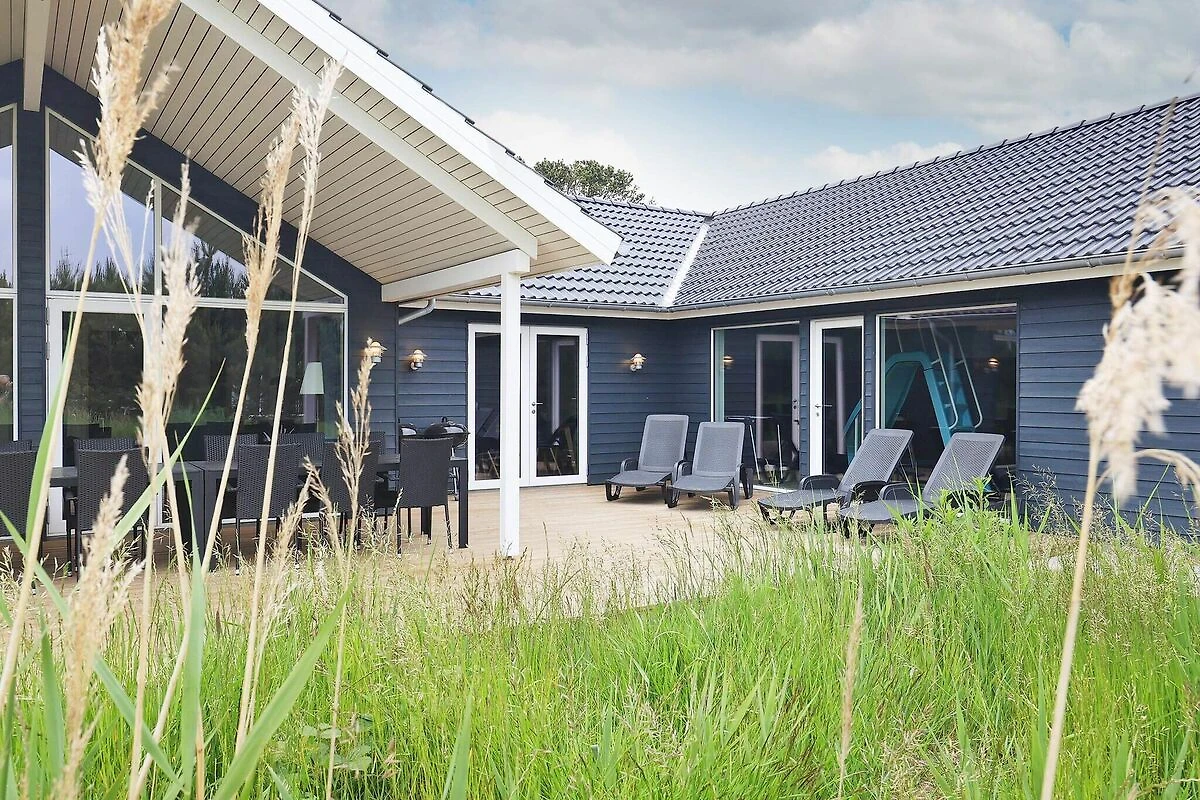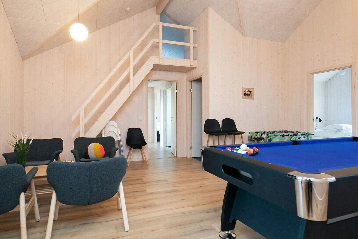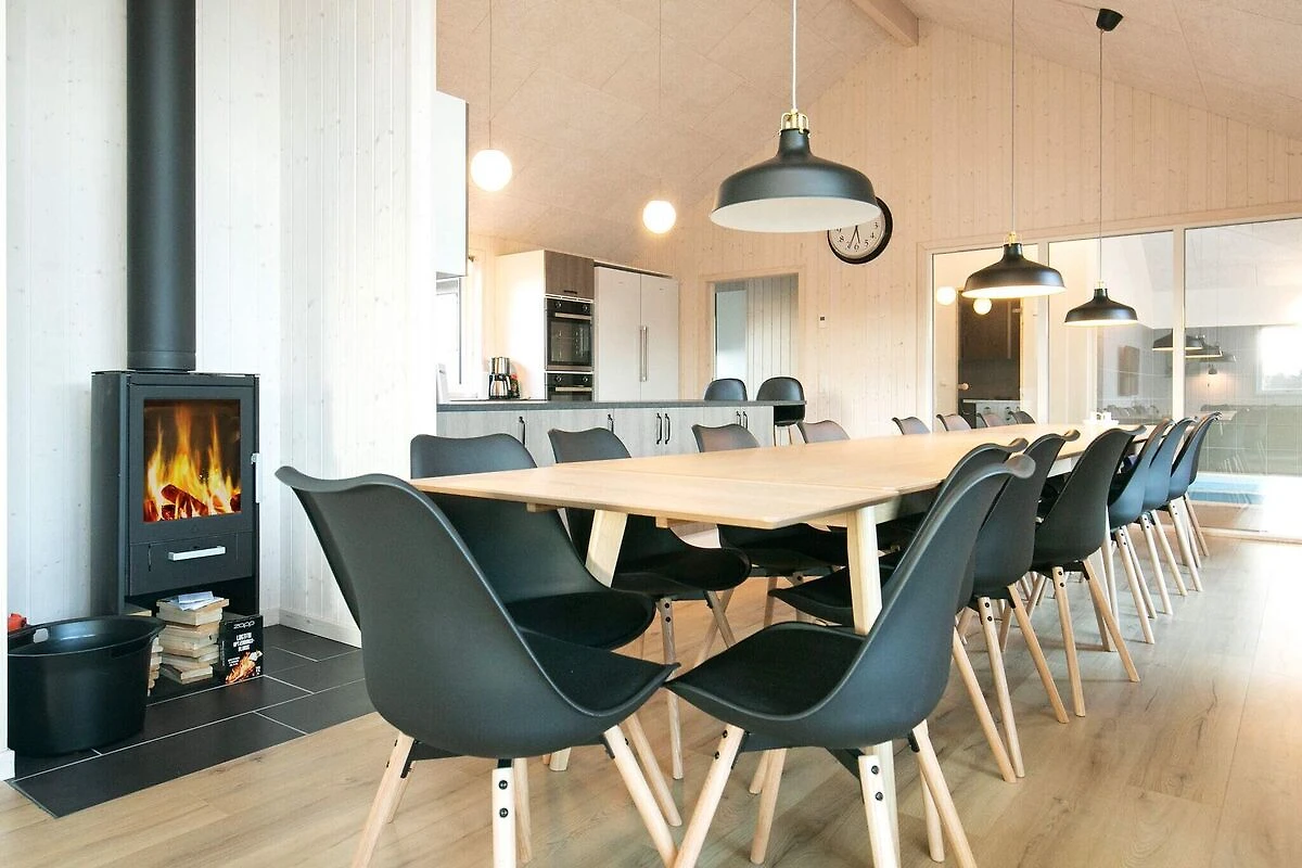 Exklusives Ferienhaus mit Swimmingpool, Whirlpool und Sauna zur Erholung und zudem diversen Aktivitäten für den Freizeitspaß. Zudem wohnen Sie hier in attraktiver Lage und ruhiger Umgebung, unweit eines schönen Strandufers mit Steg bei Bratten. Der Poolbereich des Hauses umfasst einen großen Swimmingpool, einen Schwimmtrainer, einen großen, eingelassenen Whirlpool und eine Sauna für max. 4-6 Personen. Der Pool ist 22 m² groß und verfügt auch über eine Rutsche für die Kinder. Hier können Jung und Alt zusammen viele Stunden voller Badespaß genießen! Im Aktivitätsraum stehen zur Unterhaltung Billardtisch, Kickertisch, Tischtennis und eine Stereoanlage mit CD-Player bereit. Es gibt im Haus zudem mehrere Fernseher, verteilt auf verschiedene Bereiche, mit Smart-TV und skandinavischen Sendern. Das Ess- und Wohnbereich ist geschmackvoll eingerichtet und bietet außer zwei Hochstühlen für die ganz Kleinen auch eine Sitzecke und einen Holzofen für kühlere Abende. In der gut durchdachten, offen integrierten Küche, ebenfalls mit Holzofen, stehen ein Kühlschrank, eine große Gefriertruhe sowie zwei Geschirrspüler und zwei Herde zur Verfügung, sodass die gleichzeitige Verpflegung von bis zu 22 Personen kein Problem darstellt. Das Ferienhaus ist äußerst geräumig und hat zudem eine gute Raumaufteilung mit separaten Schlafbereichen, sodass sich die Familien gut aufteilen können. Insgesamt stehen dort neun Schlafzimmer und zwei Bäder zur Verfügung. Je ein zusätzliches Badezimmer bzw. WC findet man in Verbindung zur Poolabteilung und dem Aktivitätsraum. Darüber hinaus gibt es oben unter der Dachschräge ein Loft, das sich perfekt zum Spielen und als Schlafplatz für größere Kinder eignet. Auf dem Grundstück stehen für die Kinder ein Klettergerüst sowie Schaukel, Sandkasten und ein Gartentrampolin (Nutzung nur auf eigenes Risiko) bereit. Außerdem gibt es eine große Terrassenfläche mit guten Gartenmöbeln für erholsame Stunden, in denen Sie die Sonne genießen und auch gemütliche Grillabende veranstalten können. Das Ferienhaus befindet sich in einer der schönsten Naturlandschaften Nordjütlands, im familienfreundlichen Ferienhausgebiet von Bratten. Hier gibt es viel Platz zwischen den einzelnen Ferienhäusern und die Tierwelt kann aus nächster Nähe erlebt werden. Keine Vermietung an Jugendgruppen erwünscht! BITTE BEACHTEN: Vorerst werden nur Modellfotos gezeigt.Kurz vor Ihrem Ankunftsdatum kann eine rückzahlbare Kaution erhoben werden. Die Kaution stellt sicher, dass Ihr Aufenthalt reibungslos verläuft, und deckt eventuelle Zusatzleistungen oder Verbrauchskosten ab.Diese Kaution deckt den Verbrauch von Nebenkosten während Ihres Aufenthalts sowie zusätzliche in Anspruch genommene Leistungen ab.Der endgültige Betrag wird anhand der tatsächlichen Zählerstände und Nutzung zusätzlicher Services angepasst. Ein etwaiger Restbetrag wird Ihnen innerhalb von 21 Tagen nach dem Check-out zurückerstattet.Die Kaution dient lediglich als Vorauszahlung für Leistungen, die Sie ohnehin bezahlen würden, und ermöglicht einen reibungslosen Ablauf Ihres Aufenthalts und Check-outs.