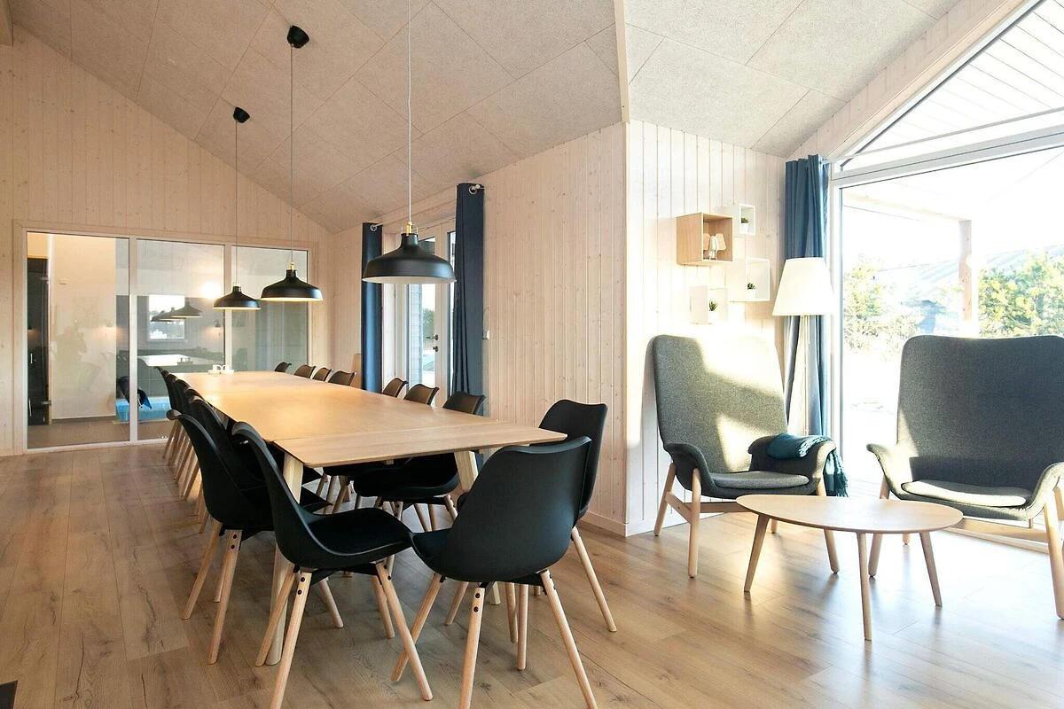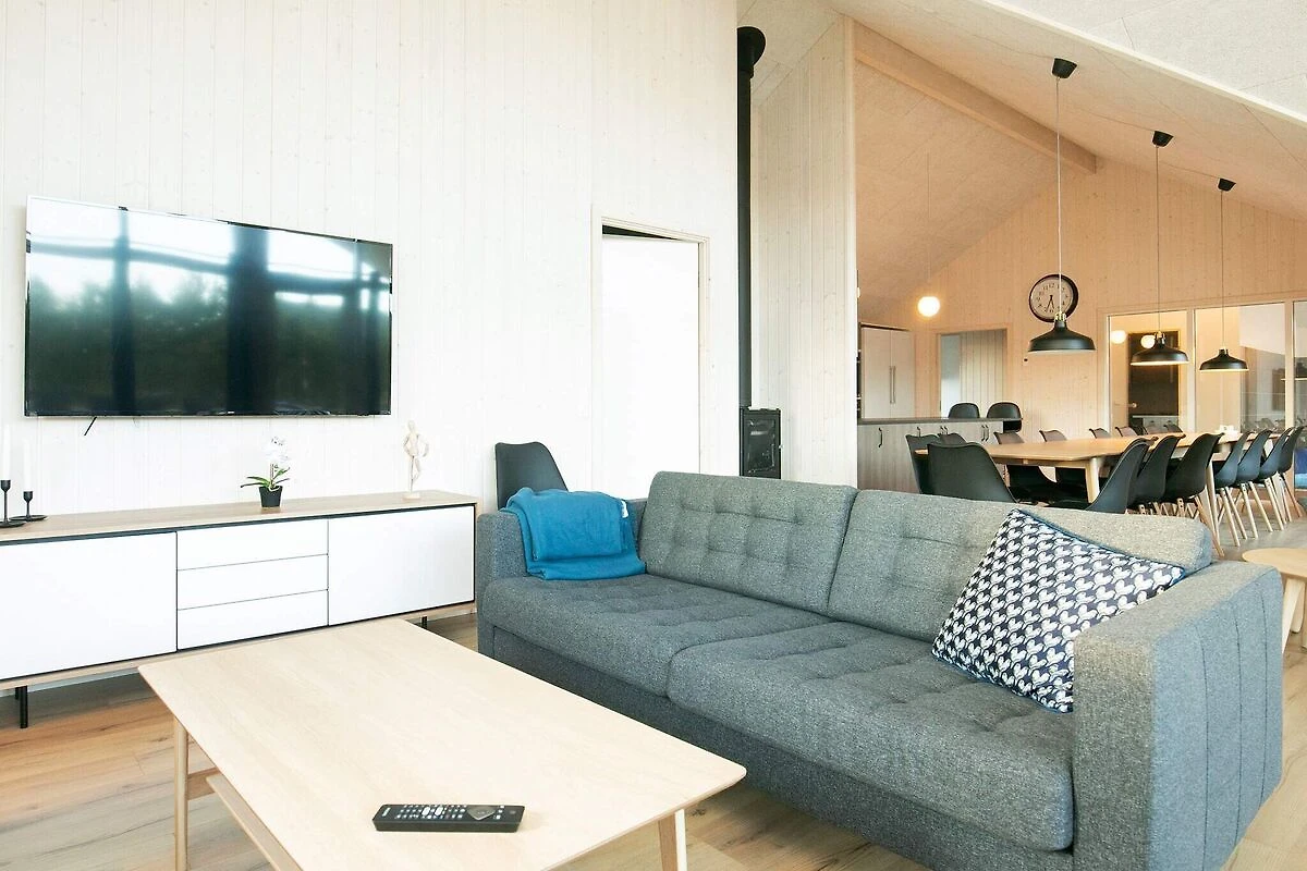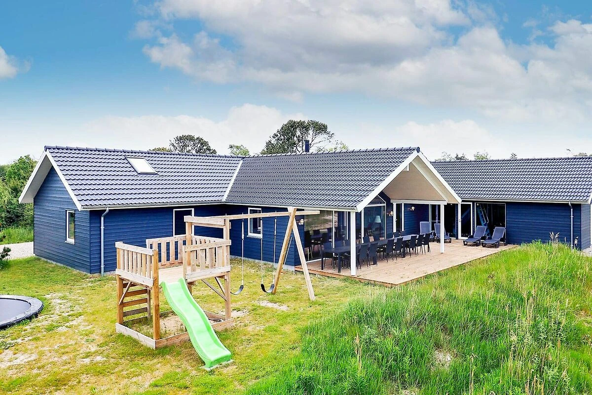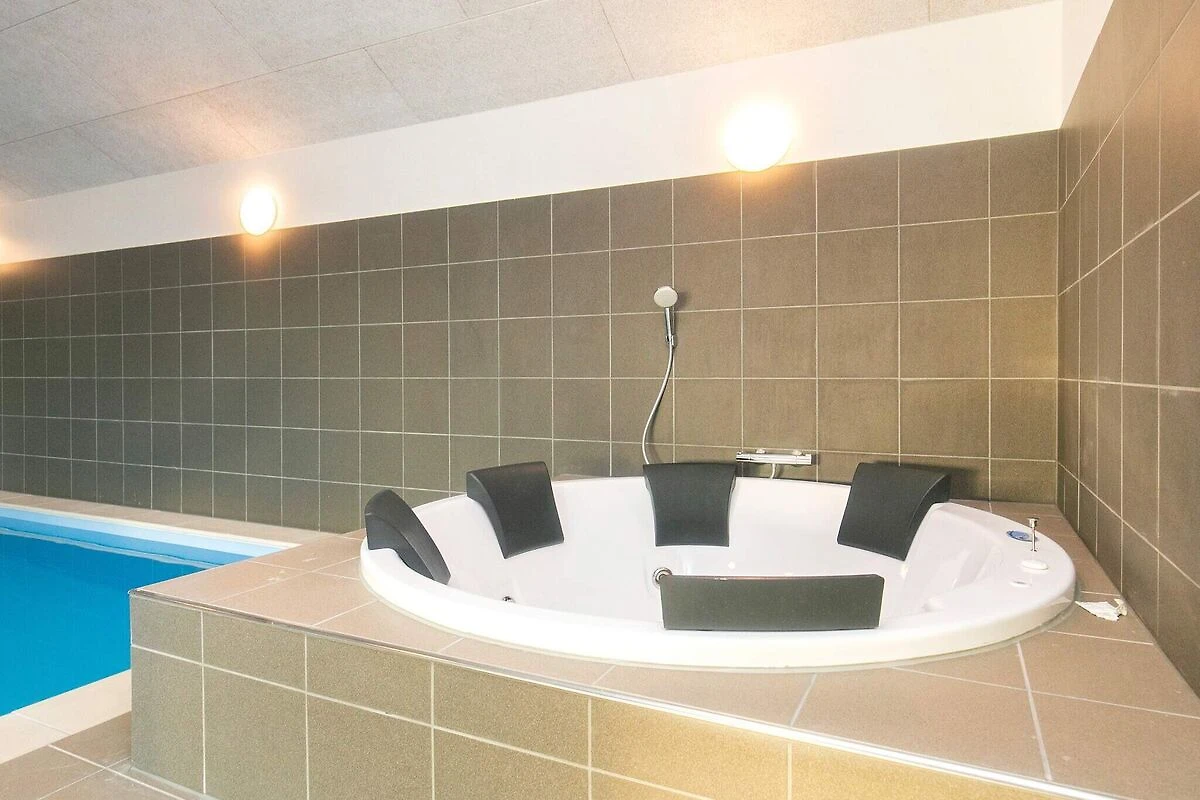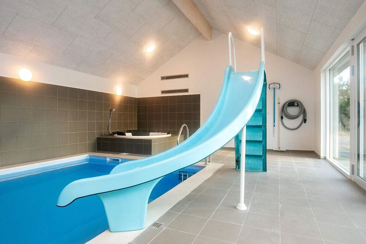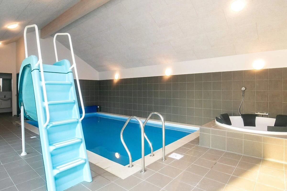 Exklusives Ferienhaus mit Swimmingpool, Whirlpool und Sauna zur Erholung und zudem diversen Aktivitäten für den Freizeitspaß. Zudem wohnen Sie hier in attraktiver Lage und ruhiger Umgebung, unweit eines schönen Strandufers mit Steg bei Bratten. Der Poolbereich des Hauses umfasst einen großen Swimmingpool, einen Schwimmtrainer, einen großen, eingelassenen Whirlpool und eine Sauna für max. 4-6 Personen. Der Pool ist 22 m² groß und verfügt auch über eine Rutsche für die Kinder. Hier können Jung und Alt zusammen viele Stunden voller Badespaß genießen! Im Aktivitätsraum stehen zur Unterhaltung Billardtisch, Kickertisch, Tischtennis und eine Stereoanlage mit CD-Player bereit. Es gibt im Haus zudem mehrere Fernseher, verteilt auf verschiedene Bereiche, mit Smart-TV und skandinavischen Sendern. Das Ess- und Wohnbereich ist geschmackvoll eingerichtet und bietet außer zwei Hochstühlen für die ganz Kleinen auch eine Sitzecke und einen Holzofen für kühlere Abende. In der gut durchdachten, offen integrierten Küche, ebenfalls mit Holzofen, stehen ein Kühlschrank, eine große Gefriertruhe sowie zwei Geschirrspüler und zwei Herde zur Verfügung, sodass die gleichzeitige Verpflegung von bis zu 22 Personen kein Problem darstellt. Das Ferienhaus ist äußerst geräumig und hat zudem eine gute Raumaufteilung mit separaten Schlafbereichen, sodass sich die Familien gut aufteilen können. Insgesamt stehen dort neun Schlafzimmer und zwei Bäder zur Verfügung. Je ein zusätzliches Badezimmer bzw. WC findet man in Verbindung zur Poolabteilung und dem Aktivitätsraum. Darüber hinaus gibt es oben unter der Dachschräge ein Loft, das sich perfekt zum Spielen und als Schlafplatz für größere Kinder eignet. Auf dem Grundstück stehen für die Kinder ein Klettergerüst sowie Schaukel, Sandkasten und ein Gartentrampolin (Nutzung nur auf eigenes Risiko) bereit. Außerdem gibt es eine große Terrassenfläche mit guten Gartenmöbeln für erholsame Stunden, in denen Sie die Sonne genießen und auch gemütliche Grillabende veranstalten können. Das Ferienhaus befindet sich in einer der schönsten Naturlandschaften Nordjütlands, im familienfreundlichen Ferienhausgebiet von Bratten. Hier gibt es viel Platz zwischen den einzelnen Ferienhäusern und die Tierwelt kann aus nächster Nähe erlebt werden. Keine Vermietung an Jugendgruppen erwünscht! BITTE BEACHTEN: Vorerst werden nur Modellfotos gezeigt.Kurz vor Ihrem Ankunftsdatum kann eine rückzahlbare Kaution erhoben werden. Die Kaution stellt sicher, dass Ihr Aufenthalt reibungslos verläuft, und deckt eventuelle Zusatzleistungen oder Verbrauchskosten ab.Diese Kaution deckt den Verbrauch von Nebenkosten während Ihres Aufenthalts sowie zusätzliche in Anspruch genommene Leistungen ab.Der endgültige Betrag wird anhand der tatsächlichen Zählerstände und Nutzung zusätzlicher Services angepasst. Ein etwaiger Restbetrag wird Ihnen innerhalb von 21 Tagen nach dem Check-out zurückerstattet.Die Kaution dient lediglich als Vorauszahlung für Leistungen, die Sie ohnehin bezahlen würden, und ermöglicht einen reibungslosen Ablauf Ihres Aufenthalts und Check-outs.