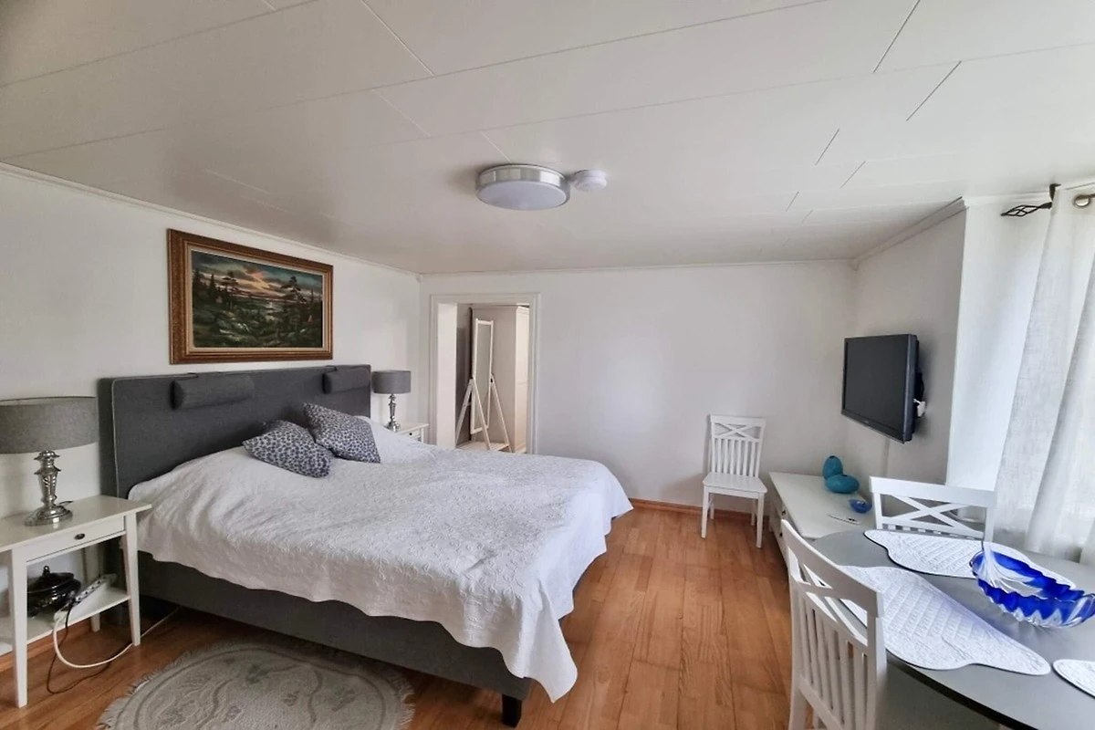 Angenehme Unterkunft in fußläufiger Entfernung zu allem! Hier in Lysekil gibt es zahlreiche Möglichkeiten zum Baden im Meer, Strände, Klippen, Geschäfte und Restaurants. Sie wohnen in einer gemütlichen Villa in einer Erdgeschosswohnung. Neben dem Eingang befindet sich Ihre eigene Terrasse auf dem Gemeinschaftsgrundstück. Die Wohnung besteht aus einem schönen Schlafzimmer mit einem komfortablen Doppelbett und einem zusätzlichen Zimmer ohne Tür mit einem Bett. Es gibt eine Küchenzeile mit Kochplatten für einfache Gerichte. Ein modernes Badezimmer mit Dusche und WC sowie ein separates WC-Zimmer stehen zur Verfügung. Ein eigener Parkplatz befindet sich auf dem Grundstück. Einzigartig auf der Insel ist die fußläufige Erreichbarkeit mehrerer schöner Schwimmbäder. Wenn Sie den Sommer nicht am Strand verbringen möchten, spazieren Sie nach Stångehuvud mit seinen wunderschönen, glatten Granitfelsen. Hier können Sie sich über eine Leiter oder einen Felsvorsprung im erfrischenden Salzwasser abkühlen. Besuchen Sie das Museum von Vikarvet und entdecken Sie die Geschichte der Stein- und Fischereiindustrie. Dort erwartet Sie auch eine große Sammlung von Schiffsmodellen. Unternehmen Sie eine Schärenrundfahrt oder einen Angelausflug und erleben Sie das Meer hautnah. Vielleicht sehen Sie sogar eine Gruppe Robben, die sich auf den Inseln sonnen. Erkunden Sie die malerischen und charmanten Schärenorte entlang der Küste im Norden und Süden. Willkommen in Lysekil, einem Ort, der untrennbar mit Sommer, Wellen, Sonne und Badespaß im Meer verbunden ist.