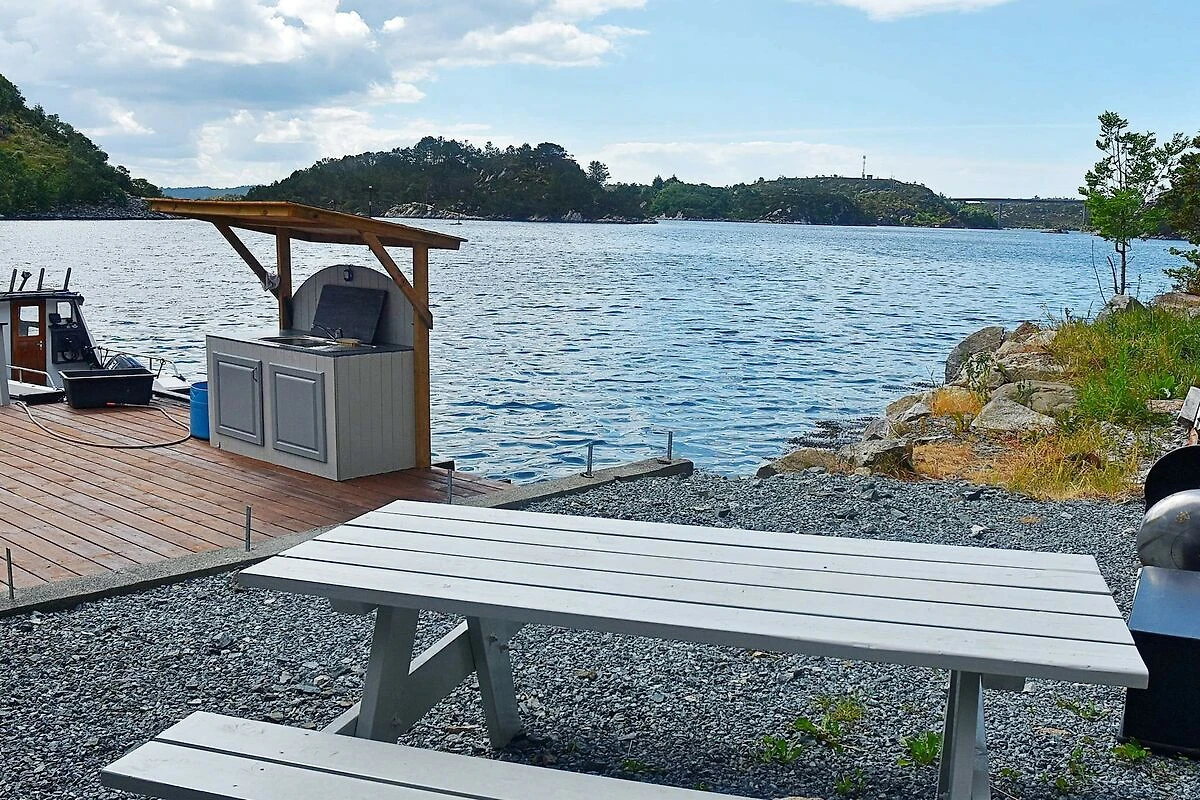 Attraktives Ferienhaus im maritimen Rorbu-Stil, gelegen auf einem nach Südosten ausgerichteten Ufergrundstück in einer geschützten Bucht. Gute Angelplätze in kurzer Entfernung, ideal für Sport- und Hobbyfischer! Das Ferienhaus verfügt über einen hochwertigen, offenen Wohnraum mit Küche und Zugang zu einem 14 m² großen Altan mit herrlicher Aussicht. TV/Internet über Glasfaser, 150 Mbit/s. Norwegische, deutsche und internationale Sender über Altibox. Zwei Schlafzimmer mit je 2 Einzelbetten, in einem zusammenstellbar. Gefliestes Bad/WC mit Duschkabine. Loft mit 150 cm Höhe und Feldbett. Eigener Eingang zum Raum zur Aufbewahrung der Angelausrüstung und zum Trocknen von Angel- und Outdoorkleidung. Günstig gelegenes Nebengebäude/Grill-/Whirlpoolhaus mit viel Platz für 4 Personen im holzbefeuerten Whirlpool und separatem Sitzbereich. Das Ferienhaus liegt in einem einzigartigen und wunderschönen Wandergebiet in kurzer Entfernung zu vielen Süßwassergewässern mit Süßwasserangelmöglichkeiten (das nächste ist 400 m entfernt). Ab Saison 2026 wird das Haus nicht mehr als touristischer Fischereibetrieb genutzt, sodass der Export von bis zu 18 kg Fisch nicht mehr möglich ist. Überdachter Fischfiletierbereich mit Wasser und Licht. Das Gebiet ist das ganze Jahr über fischreich und bietet sehr gute Angelplätze im Fjord und im offenen Wasser. Für Personen ab 1980 ist ein Bootsführerschein erforderlich. Zwei Mietboote mit Echolot/Kartenplotter/GPS liegen am Schwimmsteg vor dem Ferienhaus: *21 Fuß Quicksilver 640 Pilothouse mit Kabine und 80-PS-Motor, 8 Rutenhaltern. *18 Fuß Silver Viking 18 Fisher mit Kabine und 50-PS-Motor, 4 Rutenhaltern Bettwäsche kann für 175 NOK pro Set gemietet werden, 2 Handtücher für 95 NOK. WICHTIG: Kinder sollten immer Schwimmwesten tragen, wenn diese sich unten auf dem Kai-/Terrassenbereich direkt am Wasser aufhalten!