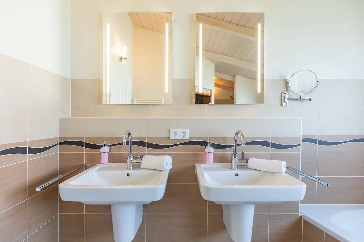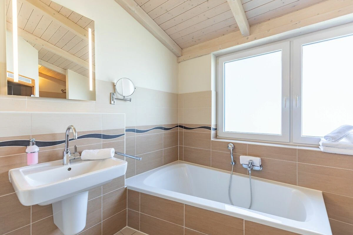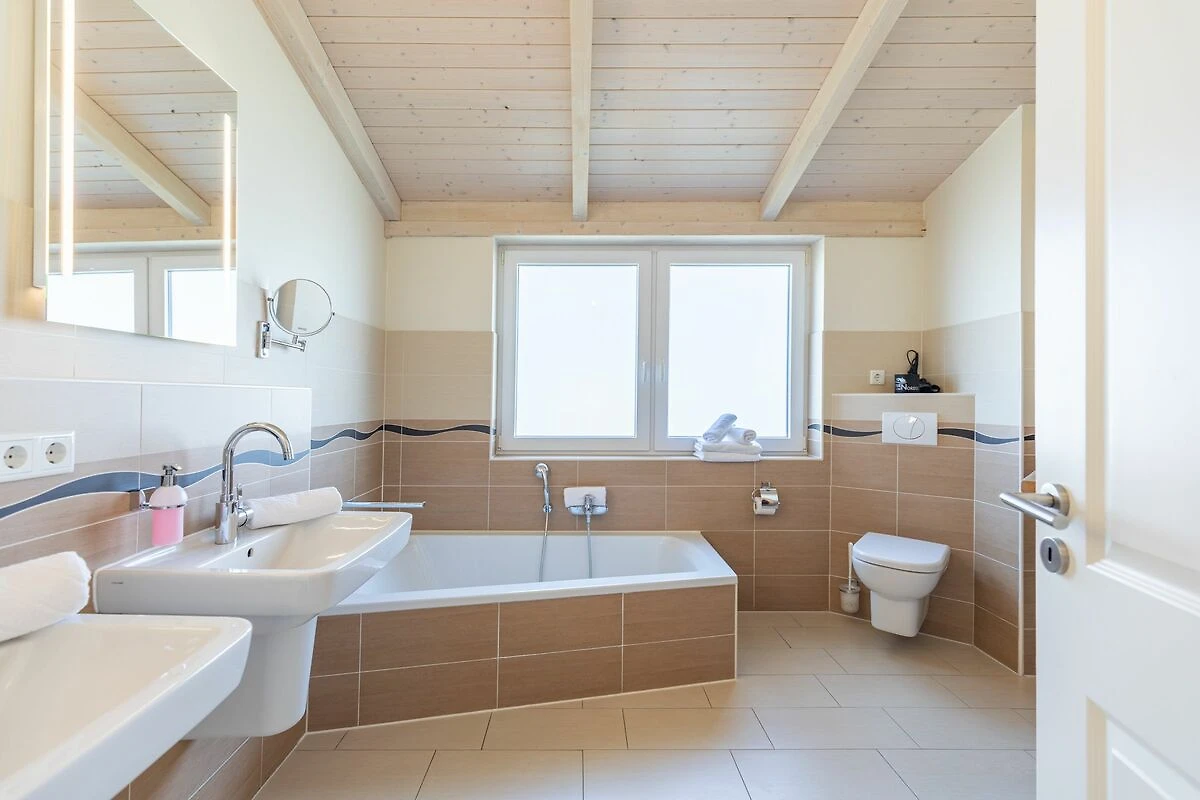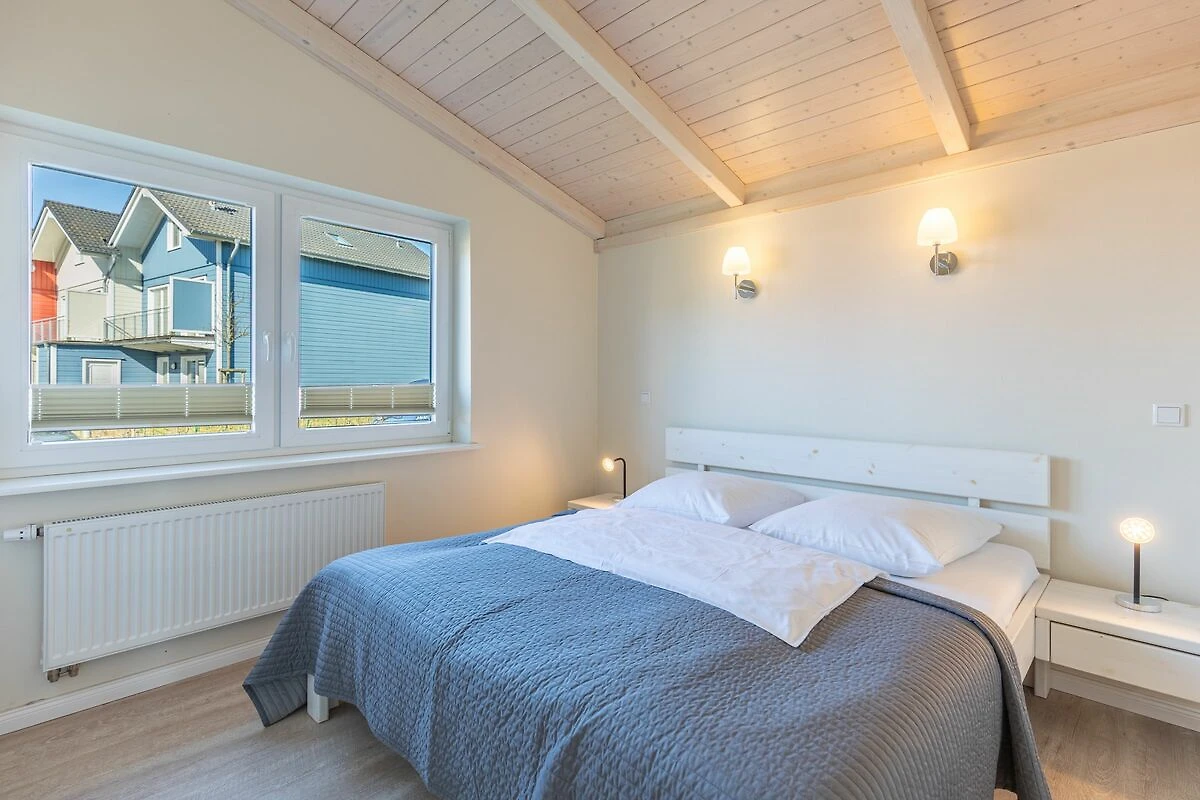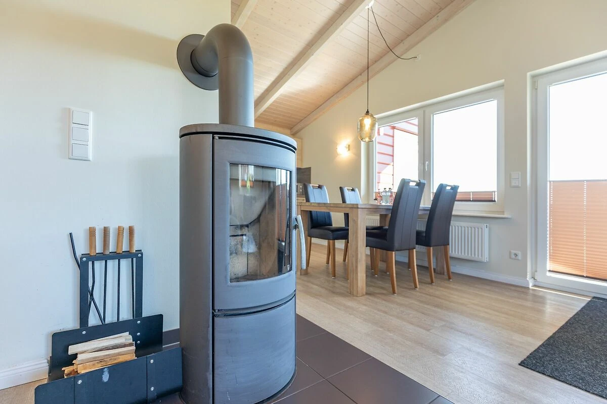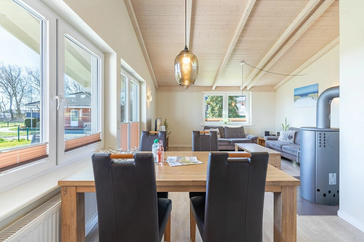 Das 85 qm große Ferienhaus ist modern und exklusiv im skandinavischen Charme eingerichtet. Die zwei Schlafzimmer mit jeweils einen Komfort-Doppelbett (180 x 200 cm) bieten Platz für bis zu vier Personen. Das gemütliche Wohnzimmer ist mit SAT-TV und einem Blu-Ray-DVD-Player ausgestattet. Der Kaminofen sorgt auch in der kälteren Jahreszeit für behagliche Stunden. Die offene Küche bietet Ihnen eine exklusive und umfangreiche Ausstattung, die das Herz eines jeden Hobbykochs höher schlagen lässt: Ceranfeld mit 4 Kochplatten, Backofen, Kühlschrank mit ***Gefrierfach, Mikrowelle, Geschirrspüler, Filterkaffeemaschine uvm. Das Badezimmer lässt keine Wünsche offen: zwei Waschbecken, eine große Badewanne, eine ebenerdige Dusche und eine schöne Sauna geben Ihrem Urlaub den richtigen Rahmen. Das Ferienhaus verfügt über ein zusätzliches WC. Auf der überdachten, windgeschützten Terrasse können Sie auf bequemen Gartenstühlen, den Sonnenliegen oder im Strandkorb die Sonne genießen.