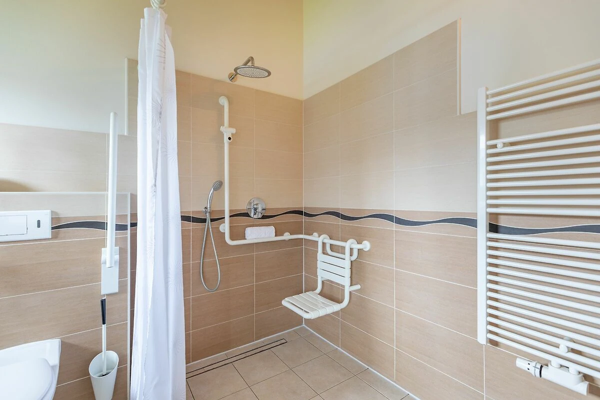 Die befahrbare Sauna mit der Liege-/Sitzfläche in Rollstuhlhöhe sorgt für einen entspannten Wellness-Urlaub!