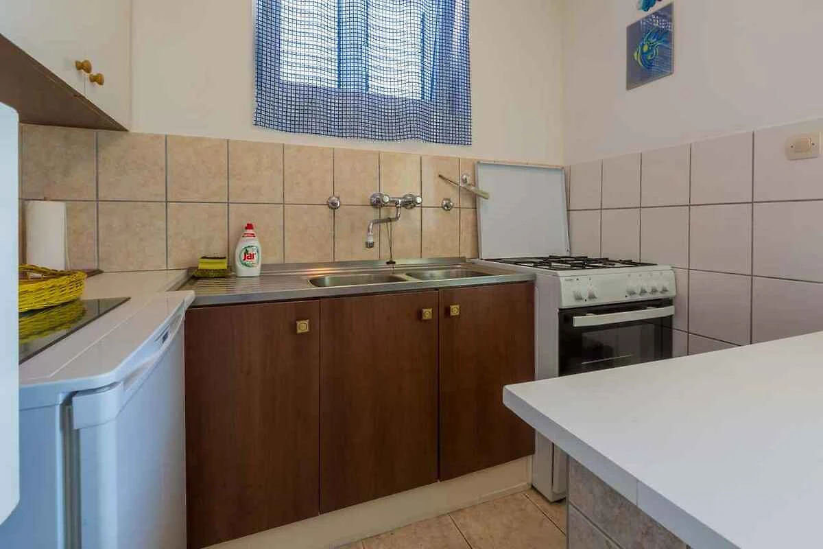 Crikvenica. Die Ferienwohnung befindet sich auf einem geschlossenen Gartengrundstück. Der Vermieter wohnt ständig im Haus. Die Zufahrt erfolgt über eine Nebenstrasse (asphaltiert). Parkplatz (für 2 Pkws) auf dem Grundstück.