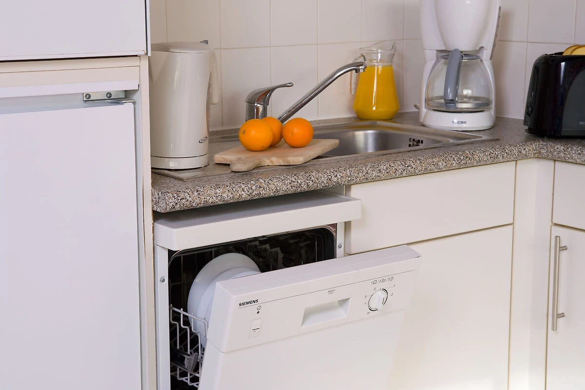 Die Apartments sind gut ausgestattet und komfortabel eingerichtet. Sie verfügen über ein Wohnzimmer mit Schlafcouch und Essecke, Sat-TV und einen Balkon mit Terrassenmöbeln. Die Küchenzeile ist mit Geschirrspüler, Mikrowelle, Backofen und Kühlschrank ausgestattet.