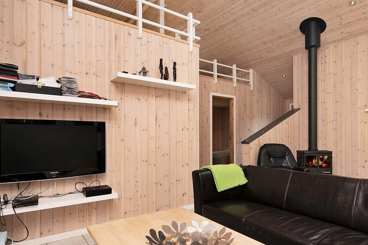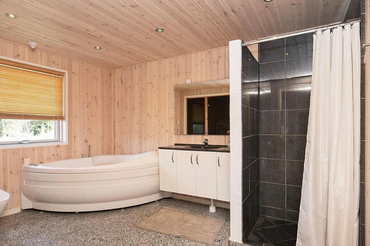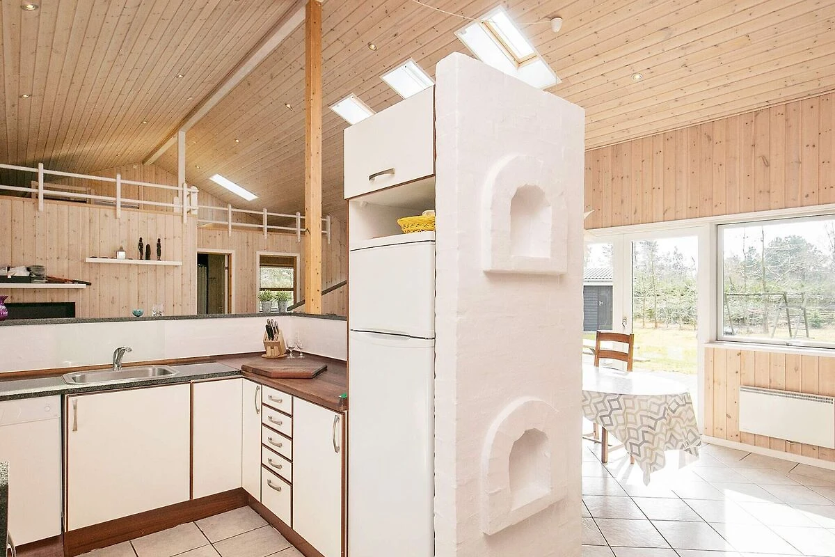 offene Küche(Kochherd(elektrisch), Dunstabzugshaube, Kaffeemaschine, Spülmaschine, Kühl-/Gefrierkombination), Wohn-/Schlafzimmer(TV(Deutsch Fernsehsender, dänische Fernsehsender), DVD-Spieler, CD-Spieler, Stereoanlage, Hochstuhl), Schlafzimmer(Doppelbett, Kinderbett), Schlafzimmer(Doppelbett), Schlafzimmer(Doppelbett), Badezimmer(Fußbodenheizung)(Trockner, Badewanne oder Dusche, Waschbecken, Toilette, Waschmaschine), Badezimmer(Fußbodenheizung)(Badewanne oder Dusche, Waschbecken, Toilette), Empore(4x Einzelklappbett ), Carport, Whirlwanne(im Innenbereich, erwärmt, 2 Personen), Heizung(elektrisch), Terrasse, Grill, Luft-Luft-Wärmepumpe