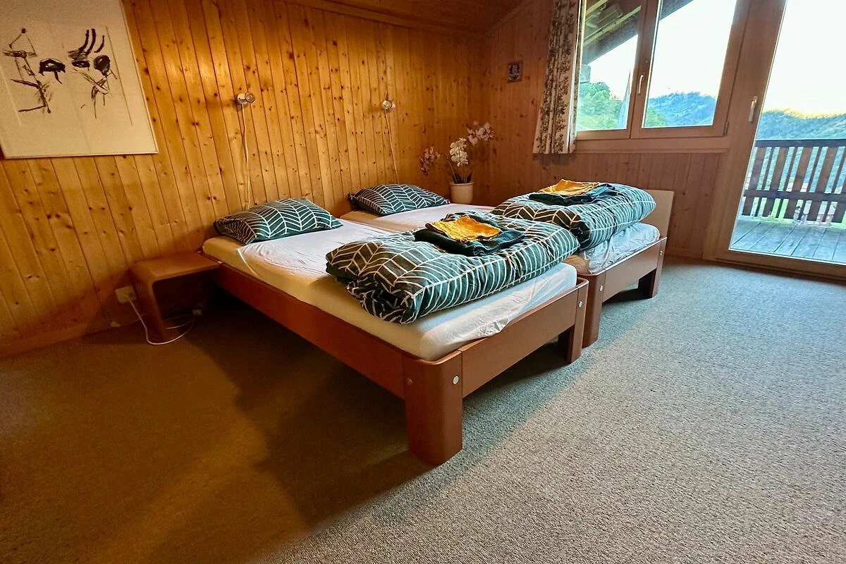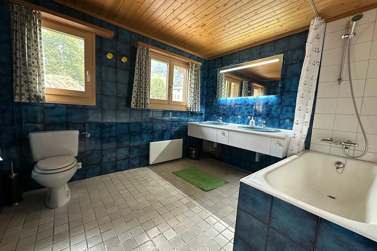 Im Obergeschoss steht eine 5,5-zimmerwhonung mit grosses Balkon und ein Panoramas Blick zur verfügung. Das Wohnzimmer ist in 2023 renoviert und hast ein offener Karmin und offene Küche welches renoviert war in 2020. Diese Whonung hat 2 Bade zimmeren mit Bad!