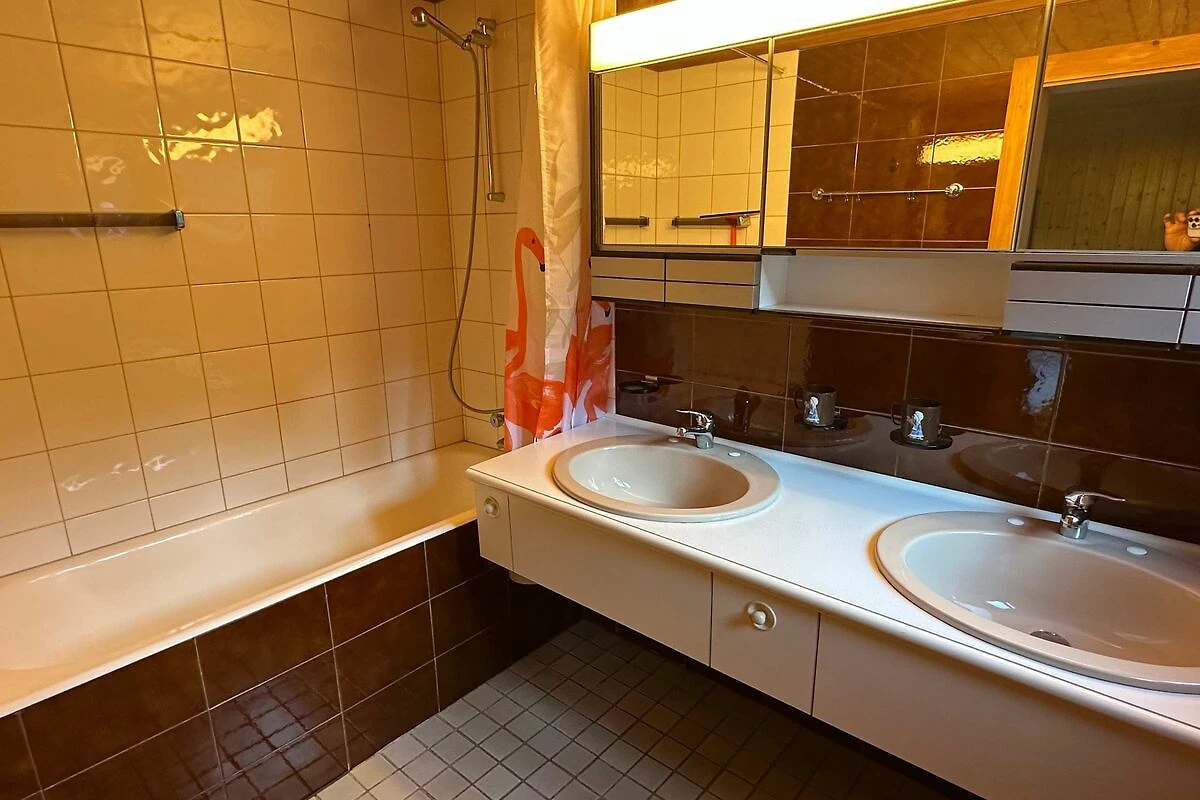 Im Erdgeschoss steht eine in 2023 vollige renovierte 4,5-Zimmerwohnung mit einem Bad und grossem Sitzplatz zur Verfügung. Mit ein groses terasse mit wunderschone blick auf den Bergen.