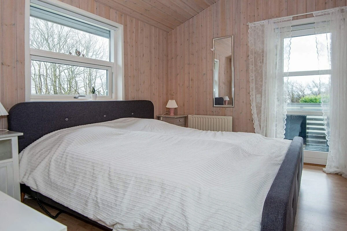 Ferienhaus in Strandnähe und mit sowohl Sauna als auch Whirlool zur Erholung im Bad. Sie wohnen hier bei Mommark, im Süden der Insel Als. Das Haus liegt in einem Ferienhausgebiet und bietet von seinem Wohnbereich und vor der Terrasse davor aus herrlichen Ausblick bis zur Küste am Horizont! Es erwartet Sie ein wohnliches Ambiente im hell und ansprechend eingerichteten Inneren des Hauses, u.a. mit einer großen Fensterfront in Richtung Küste. Die Wohnfläche wurde optimal ausgenutzt. So stehen eine Eingangsdiele, ein geräumiger, offener Küchen-/Wohnbereich mit offener Zimmerdecke bis zum First und schönem Ausblick bis zum Wasser bereit. Von hier aus haben Sie Zugang zur teils überdachten, weitläufigen Terrassenfläche des Hauses. Darüber hinaus stehen drei Schlafzimmer und ein großes Badezimmer mit u.a. Whirlpool und Sauna zur Verfügung. Die große Holzterrasse umschließt quassi das gesamte Haus einmal und bietet sich so als Sitzplatz im Freien zu fast jeder Tageszeit an. Vom zugehörigen Rasengrundstück aus sind es nur wenige Gehminuten zum breiten, kinderfreundlichen Strand und nicht zuletzt zur beliebten Mommark Marina, die völlig ungestört und idyllisch, mit Blick auf den Kleinen Belt und zur Ostsee liegt. Hier finden Sie auch ein gemütliches kleines Café direkt am Hafen und am Strand. Keine Vermietung an Jugendgruppen erwünscht!