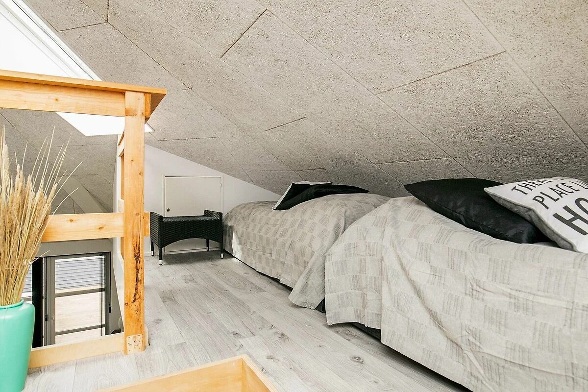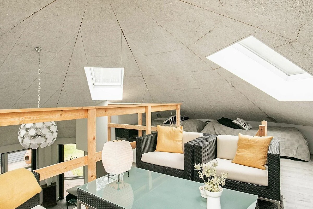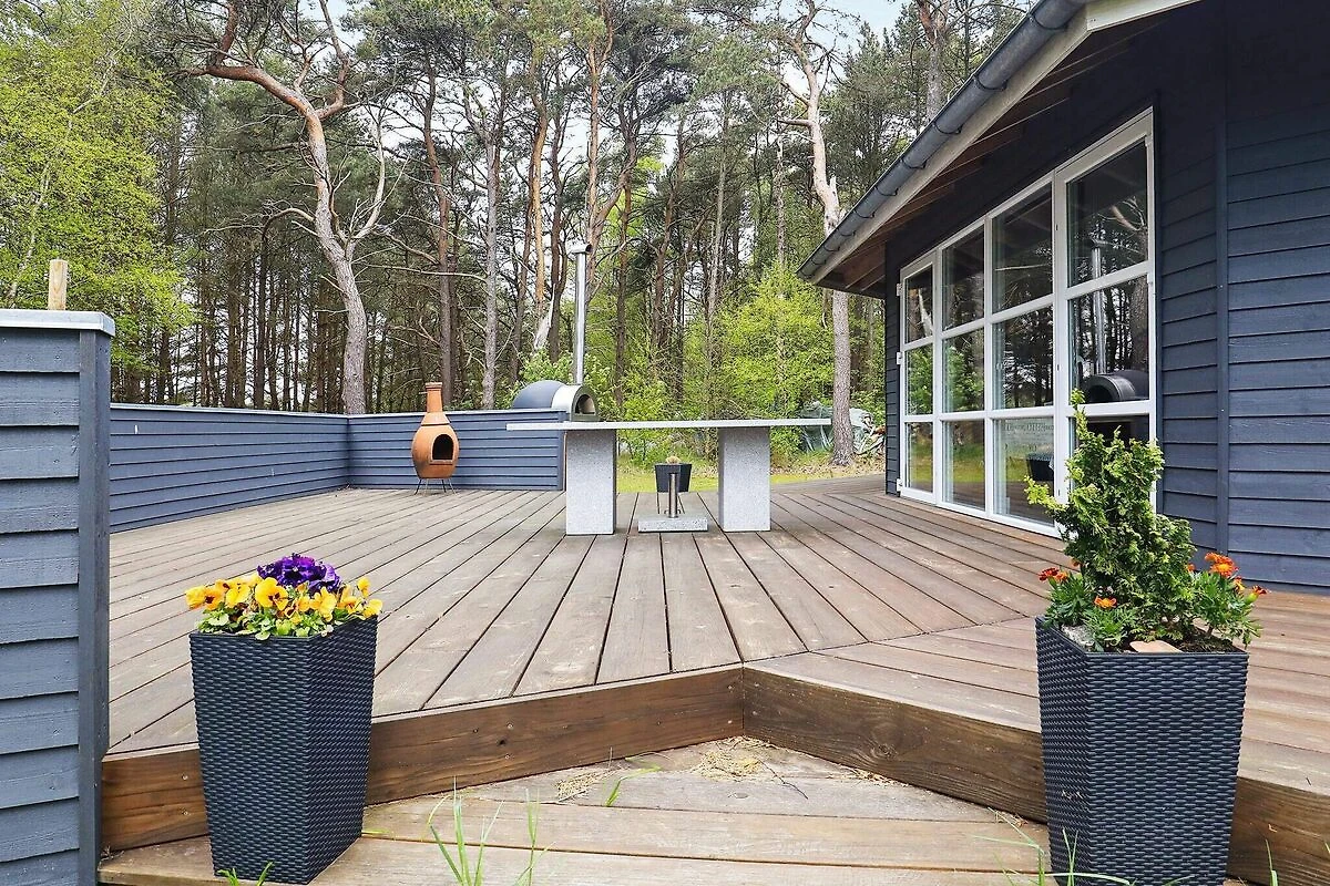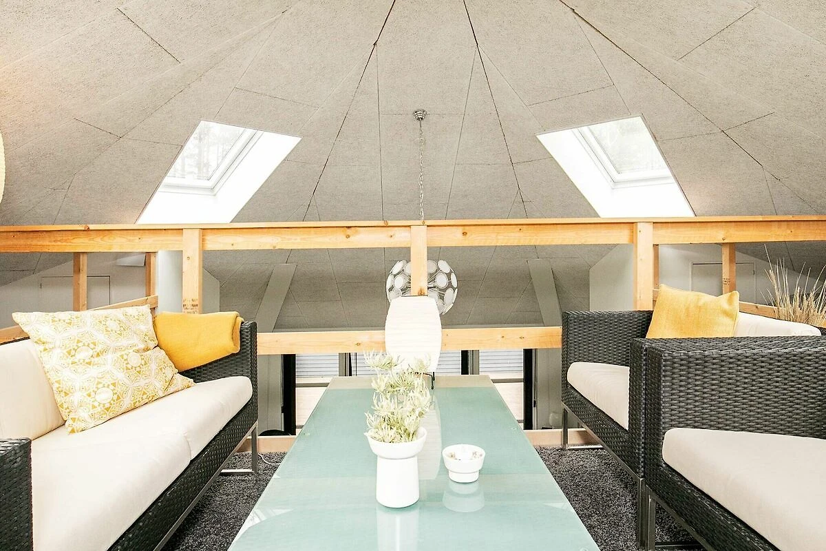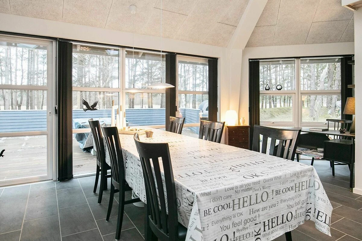 Ganz individuell gestaltetes, achteckiges Ferienhaus mit Whirlpool im Bad sowie attraktiver Umgebung auf der Ostseeinsel Læsø. Das ideale Ferienhaus für eine große Familie, die innen und außen viel Platz benötigt und zugleich eine gemütliche Wohnatmosphäre wünscht. Der Stil im Inneren ist modern und funktional, hier fehlt es an nichts. Es gibt drei gute Schlafzimmer mit bequemen Schlafplätzen sowie Stauraum, in einem der Zimmer steht auch ein Fernseher mit einigen deutschen Sendern zur Auswahl. Zudem großer Hems oben unter der Dachschräge mit Zugang über eine solide Treppe und Platz für spielende Kinder oder als Rückzugsort für ruhige Stunden mit einer Tasse Kaffee. Im Haus auch zwei Badezimmer mit Dusche und angenehmer Fußbodenheizung, von davon zudem mit Whirlpool für erholsamen Badespaß. Den Mittelpunkt des Hauses bildet der geräumige, offene Wohnbereic mit guter Akustik und offen integrierter Küche. Hier gibt es viel Platz für gemeinsame Aktivitäten wie z.B. Kochen, Essen, Spiele spielen oder um einen guten Film zu gucken. Ein Holzofen steht für gemütliche Stunden bereit. Der Raum hat diverse Fenster sowie zwei Oberlichter, die zum hellen, wohnlichen Ambiente beitragen. Der Raum bietet zudem Zugang zur Terrassenfläche davor. Zur technischen Ausstattung des Ferienhauses gehören auch Apple TV, Chromecast und WLAN zum Streamen Ihrer persönlichen TV-Dienste. Darüber hinaus ist das moderne Ferienhaus mit einer klimafreundlichen Luft-Wasser-Wärmepumpe und Solarzellen ausgestattet, um die Nebenkosten möglichst gering zu halten. Der kleinere Annex nebenan auf dem Grundstück ist beheizbar und bietet Platz für zwei Personen, die hier auch ein kleie Küchenzeile zur Verfügung haben. Mit Zugang von außen stehen eine zusätzliche Toilette und Dusche zur Verfügung. Es gibt mehrere Terrassenflächen im Außenbereich des Hauses, sodass man dem Verlauf der Sonne folgen oder Windschutz bzw. Schatten finden kann. Zudem Pizzaofen vor Ort und eine große Rasenfläche für Spiel und Spaß der Kinder. Keine Vermietung an Jugendgruppen erwünscht!