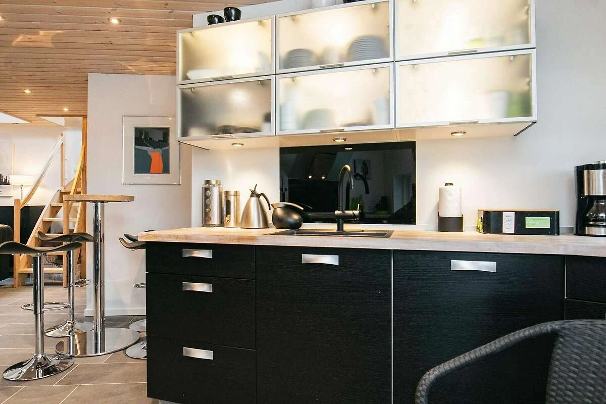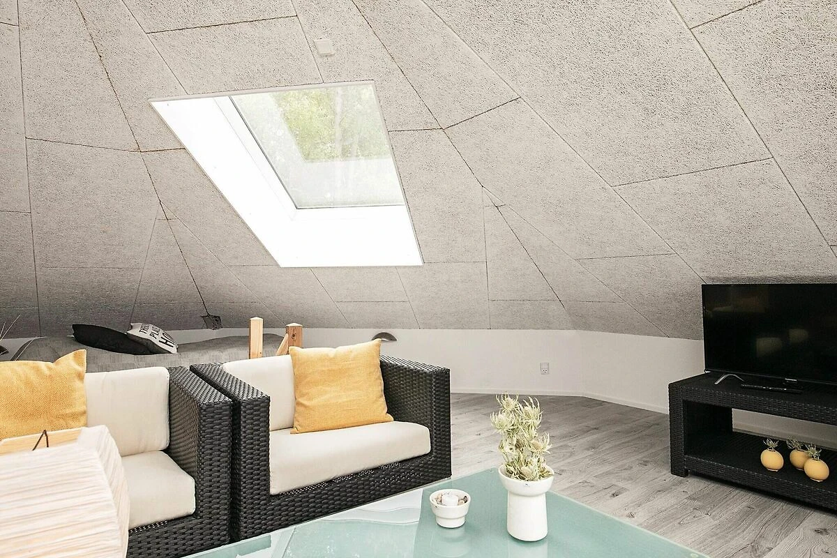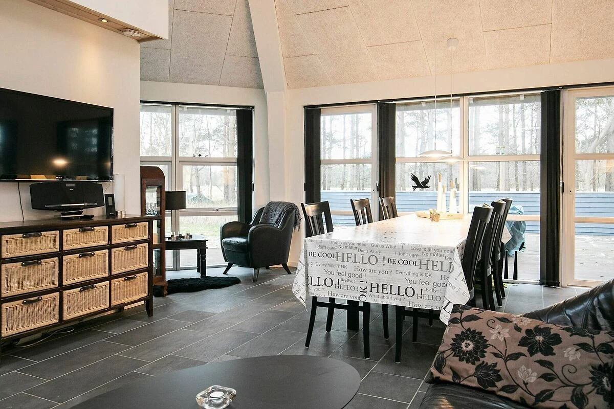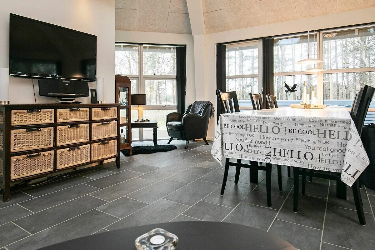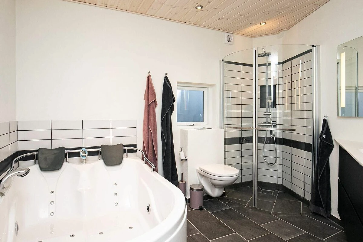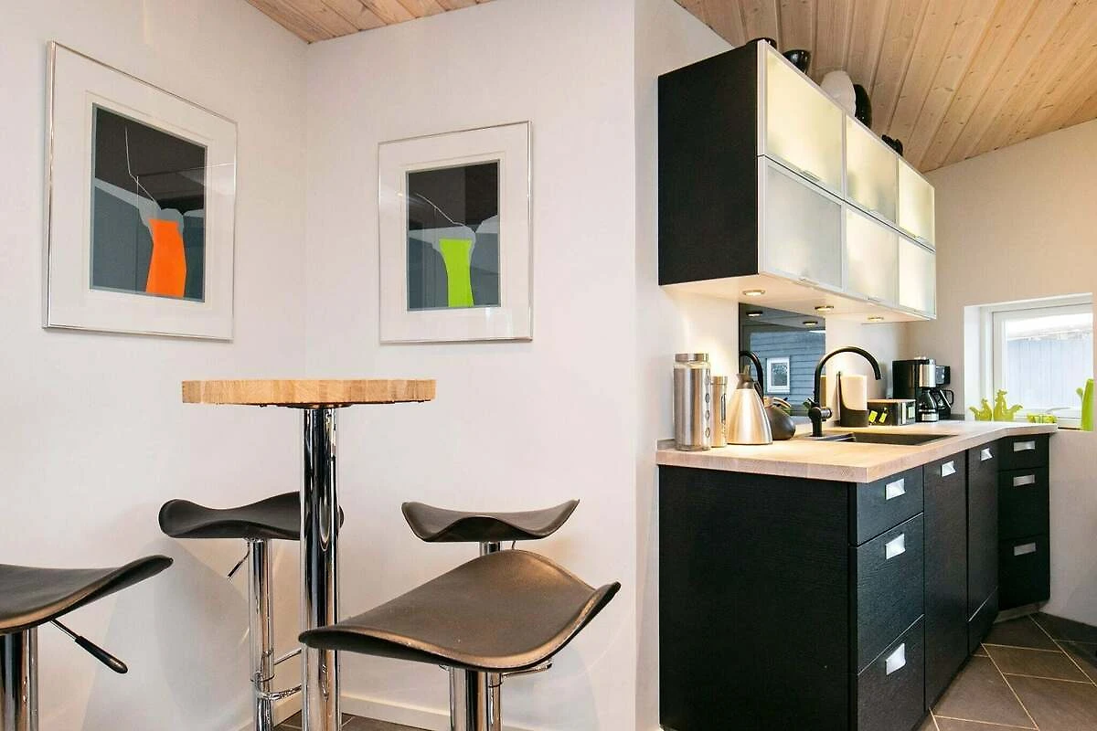 Ganz individuell gestaltetes, achteckiges Ferienhaus mit Whirlpool im Bad sowie attraktiver Umgebung auf der Ostseeinsel Læsø. Das ideale Ferienhaus für eine große Familie, die innen und außen viel Platz benötigt und zugleich eine gemütliche Wohnatmosphäre wünscht. Der Stil im Inneren ist modern und funktional, hier fehlt es an nichts. Es gibt drei gute Schlafzimmer mit bequemen Schlafplätzen sowie Stauraum, in einem der Zimmer steht auch ein Fernseher mit einigen deutschen Sendern zur Auswahl. Zudem großer Hems oben unter der Dachschräge mit Zugang über eine solide Treppe und Platz für spielende Kinder oder als Rückzugsort für ruhige Stunden mit einer Tasse Kaffee. Im Haus auch zwei Badezimmer mit Dusche und angenehmer Fußbodenheizung, von davon zudem mit Whirlpool für erholsamen Badespaß. Den Mittelpunkt des Hauses bildet der geräumige, offene Wohnbereic mit guter Akustik und offen integrierter Küche. Hier gibt es viel Platz für gemeinsame Aktivitäten wie z.B. Kochen, Essen, Spiele spielen oder um einen guten Film zu gucken. Ein Holzofen steht für gemütliche Stunden bereit. Der Raum hat diverse Fenster sowie zwei Oberlichter, die zum hellen, wohnlichen Ambiente beitragen. Der Raum bietet zudem Zugang zur Terrassenfläche davor. Zur technischen Ausstattung des Ferienhauses gehören auch Apple TV, Chromecast und WLAN zum Streamen Ihrer persönlichen TV-Dienste. Darüber hinaus ist das moderne Ferienhaus mit einer klimafreundlichen Luft-Wasser-Wärmepumpe und Solarzellen ausgestattet, um die Nebenkosten möglichst gering zu halten. Der kleinere Annex nebenan auf dem Grundstück ist beheizbar und bietet Platz für zwei Personen, die hier auch ein kleie Küchenzeile zur Verfügung haben. Mit Zugang von außen stehen eine zusätzliche Toilette und Dusche zur Verfügung. Es gibt mehrere Terrassenflächen im Außenbereich des Hauses, sodass man dem Verlauf der Sonne folgen oder Windschutz bzw. Schatten finden kann. Zudem Pizzaofen vor Ort und eine große Rasenfläche für Spiel und Spaß der Kinder. Keine Vermietung an Jugendgruppen erwünscht!