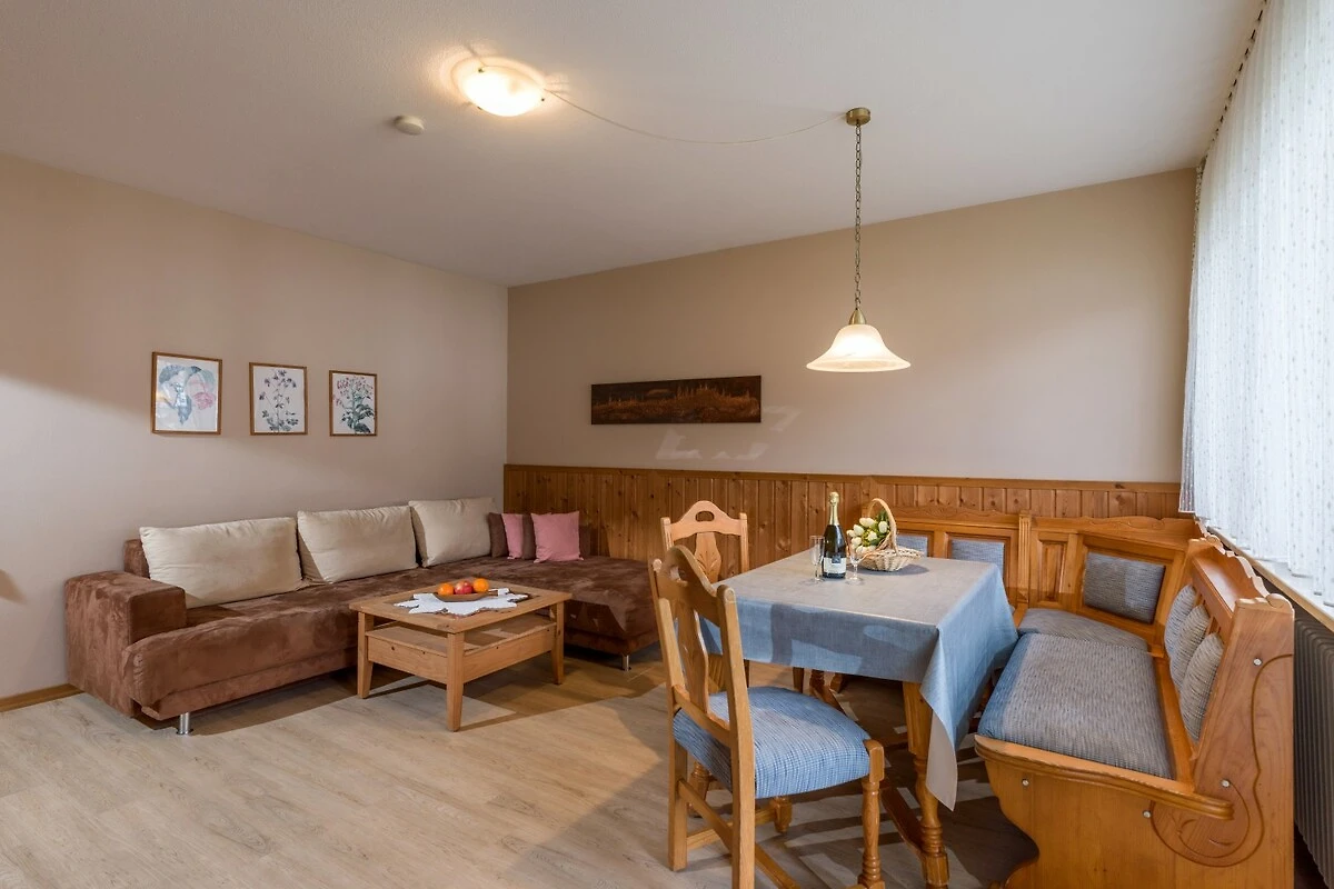 Gemütlich Zweizimmerwohnung mit Blick nach Süden auf das Kaisergebirge (56 qm, 2 bis 4 Personen) mit neuer gemütlicher Eckbank und einer Schlafcouch. Das Schlafzimmer ist mit einem Doppel- und Einzelbett sowie einem Kleiderschrank ausgestattet. Das Bad ist mit WC und Wanne ausgestattet. Die Küche bietet einen 4 Plattenherd, Backofen, Kühlschrank, Mikrowelle, Kaffeemaschine und Toaster sowie alle nötigen Kochutensilien. Nach einem ereignisreichen Tag lädt der Balkon zum Entspannen ein. Handtücher und Bettwäsche sind inklusive. Ein Tiefgaragenstellplatz ist vorhanden. Die Ferienwohnanlage Oberaudorf bietet ein Hallenbad mit 30 Grad, eine finnische Sauna, einen Ruheraum zum relaxen, einen Fitnessraum sowie einen Spielkeller. Im Keller befindet sich ausserdem ein Skikeller und eine Waschmaschine & Trockner. Die Gartenanlage mit Spielplatz lädt zum entspannen ein. In der Frühstückspension Lavendel können Sie das Frühstücksbuffet geniessen (nur mit Voranmeldung).