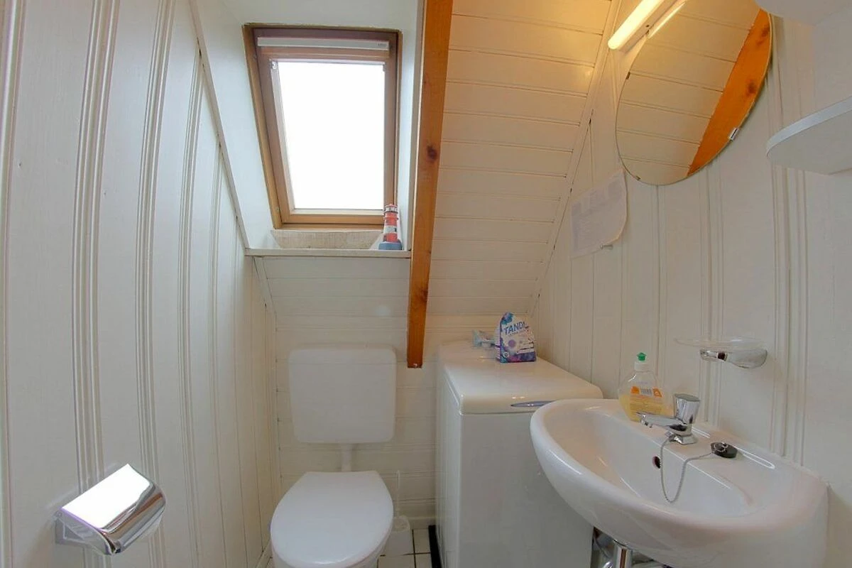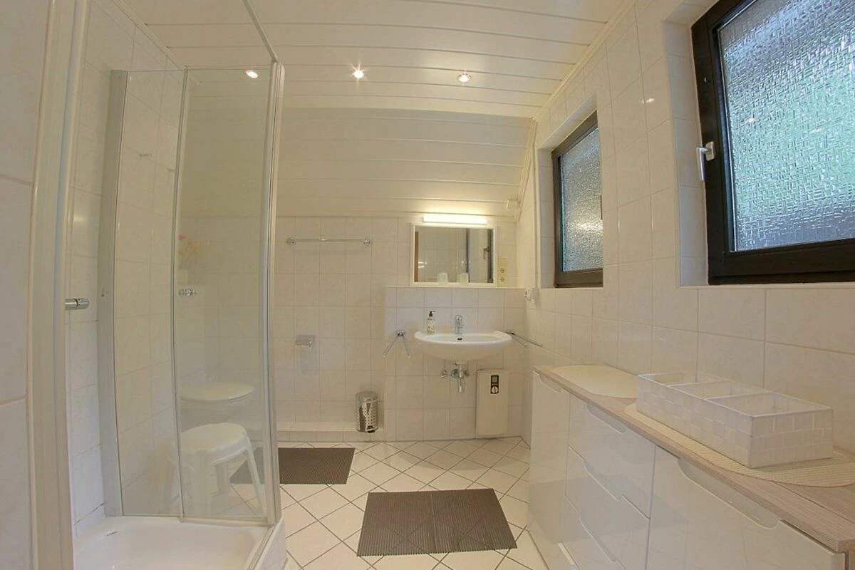 Das helle Duschbad mit Fenster und Rollo befindet sich ebenfalls im Erdgeschoss.