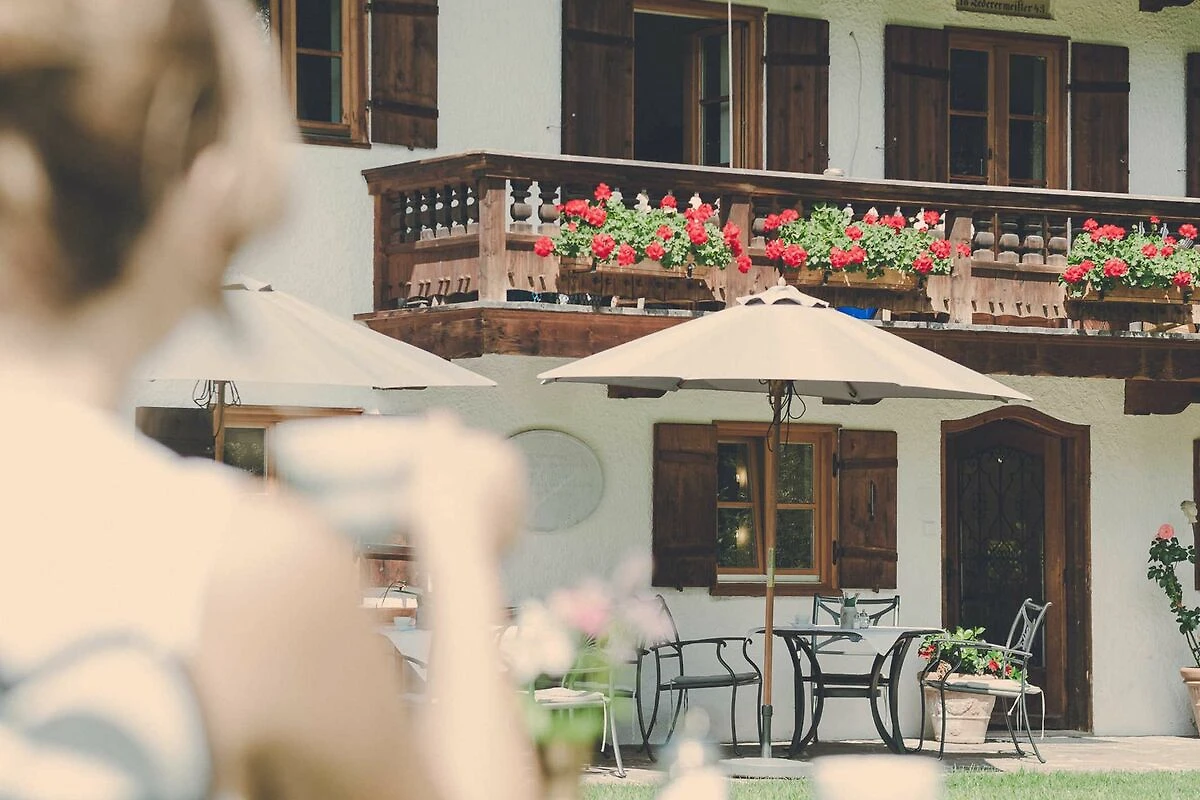 Auch Frühstücksraum und Rezeption haben sich verändert Wände wurden entfernt und Terrassentüren eingebaut, so dass ein luftiger, moderner Raum entstanden ist. Die bayrischen Elemente fehlen aber natürlich nicht!