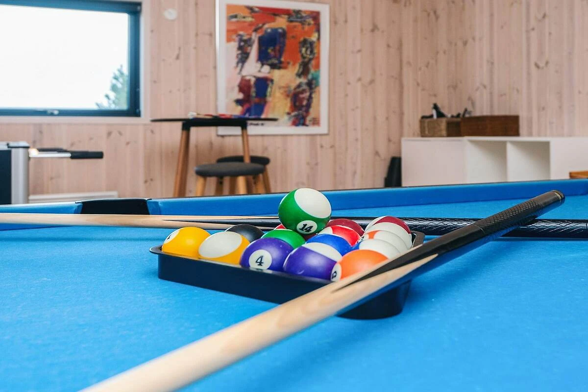 In einem ruhigen Weg bei Sønderho, an der Südspitze von Fanø, steht dieses gemütliche Ferienhaus mit Aktivitätsraum auf dem Dachboden mit Fernseher. Im Aktivitätsraum finden Sie zum Zeitvertreib Billard, Darts und Tischfußball vor. Das Ferienhaus ist hell und freundlich eingerichtet, mit einer Wohnküche, die einen gemütlichen Kaminofen und Zugang zu mehrere schöne Terrassen hat. Das Ferienhaus hat zwei Badezimmer; das größere Badezimmer hat sowohl Whirlpool als auch Sauna. In den vier Schlafzimmern stehen jeweils zwei Einzelbetten bereit. Den Strand sowie den Ortskern können Sie bequem mit dem Fahrrad erreichen. Ein sehr schönes Ferienhaus in Sønderho auf Fanø. Die Endreinigung ist bereits im Mietpreis enthalten!Kurz vor Ihrem Ankunftsdatum kann eine rückzahlbare Kaution erhoben werden. Die Kaution stellt sicher, dass Ihr Aufenthalt reibungslos verläuft, und deckt eventuelle Zusatzleistungen oder Verbrauchskosten ab.Diese Kaution deckt den Verbrauch von Nebenkosten während Ihres Aufenthalts sowie zusätzliche in Anspruch genommene Leistungen ab.Der endgültige Betrag wird anhand der tatsächlichen Zählerstände und Nutzung zusätzlicher Services angepasst. Ein etwaiger Restbetrag wird Ihnen innerhalb von 21 Tagen nach dem Check-out zurückerstattet.Die Kaution dient lediglich als Vorauszahlung für Leistungen, die Sie ohnehin bezahlen würden, und ermöglicht einen reibungslosen Ablauf Ihres Aufenthalts und Check-outs.